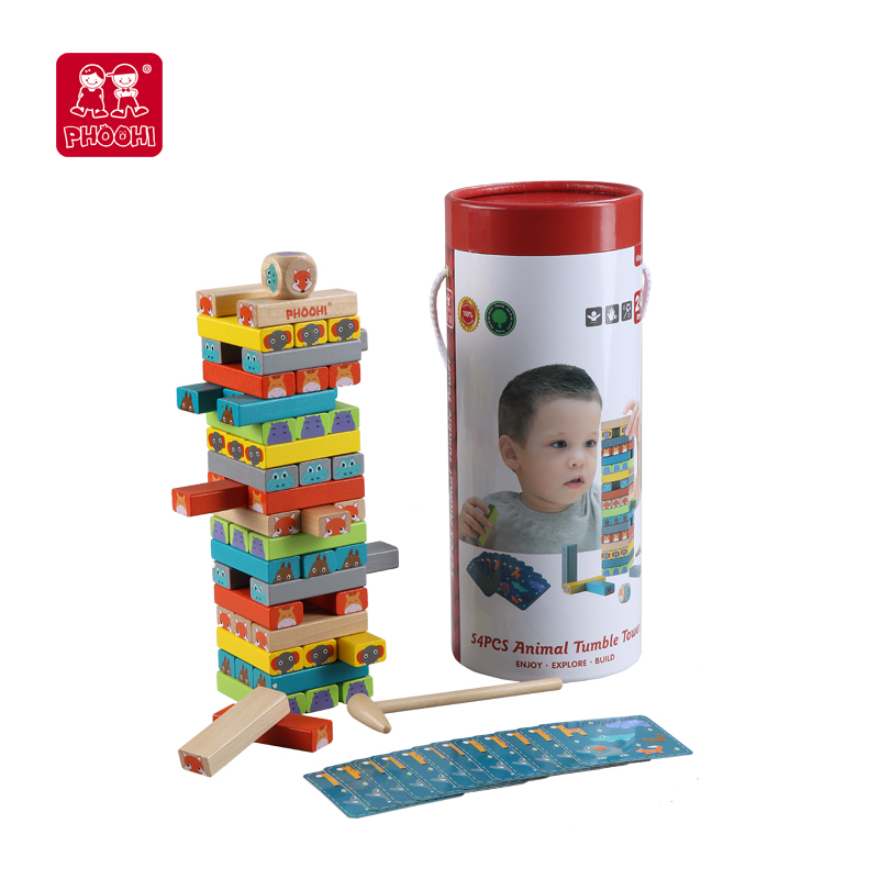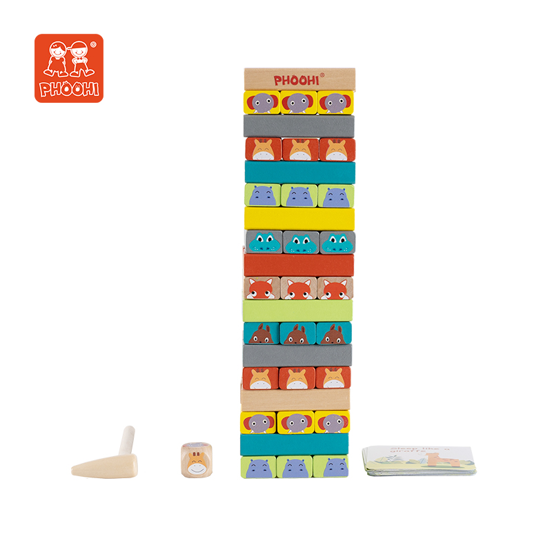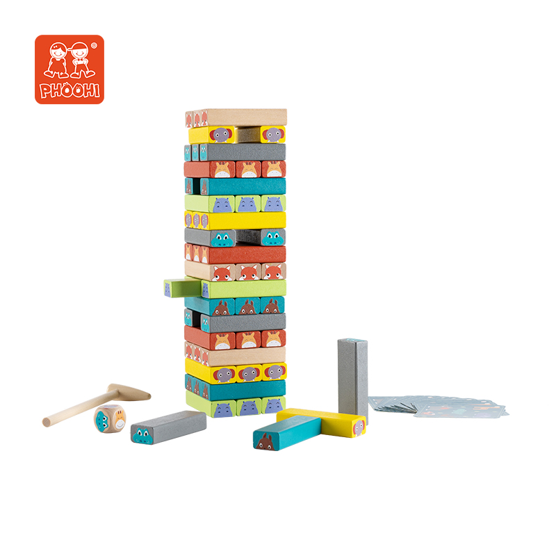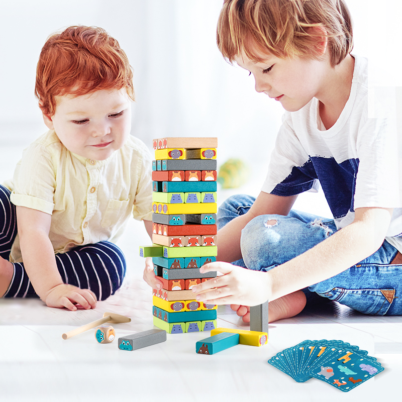 Take turns to pull out a block and reposition it on the top of tower until wooden tower collapses. The last one who pulls a block without crashing the tower is the winner.