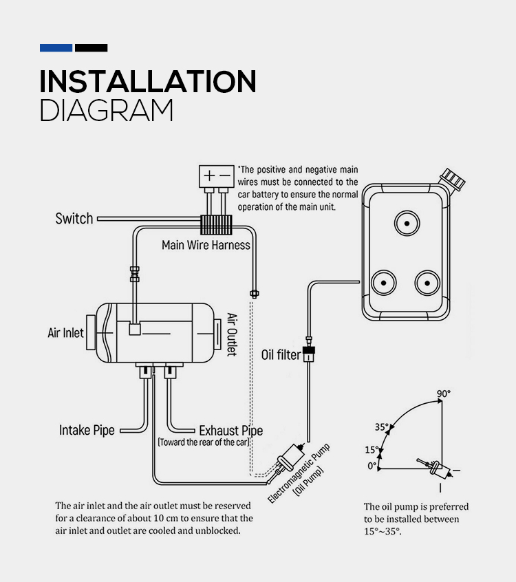 The running of the air parking heater is free from the influence of engine. It can realize quick heating and its installation is easy, which makes it to be widely used in different fields like transportation vehicles, recreational vehicles, engineering machinery and crane.