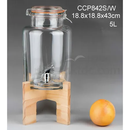 5L glass juice dispenser with wooden stand