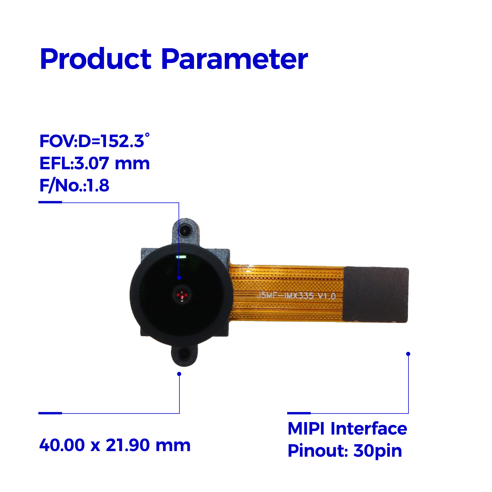 HAMPO-J5MF-IMX335 V1.0 is a 5megapixel MIPI interface camera module,using 1/2.8" Sony IMX335 image sensor which 152Degree wide angle lens, the max definition is 2592 x 1944.