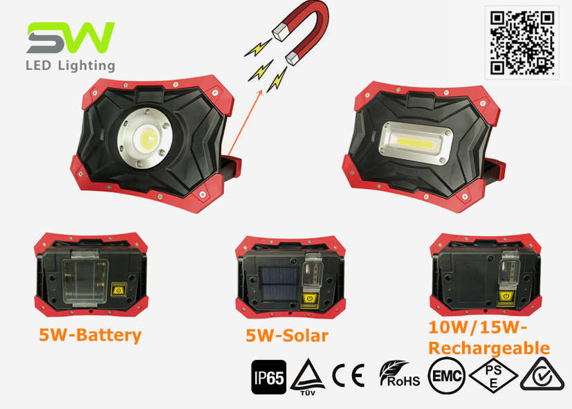 5W COB LED Magnetic 4 Pcs AA Battery Powered Auto Inspection Light Descriptions: