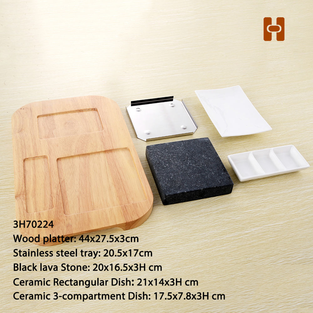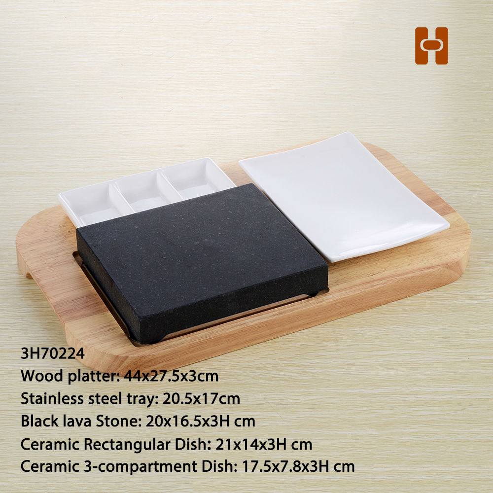 5pc Stone Grill Lava Rock Grill Sets with Wood Platter
