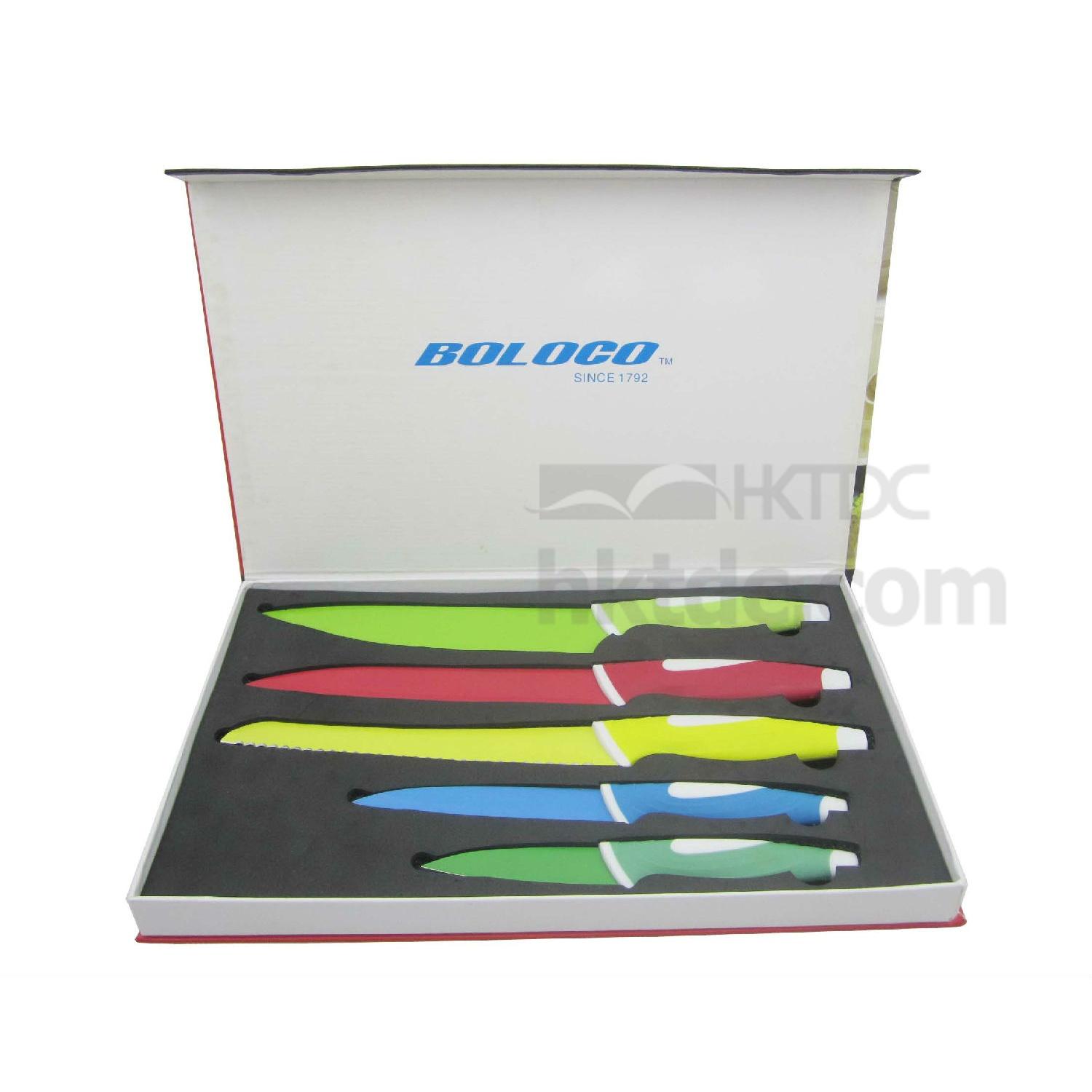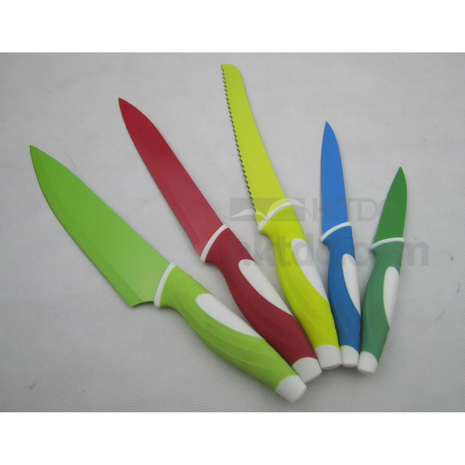 5pcs non-stick coating knife set in a color gift box, each set include: