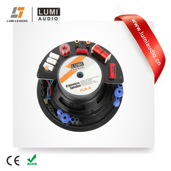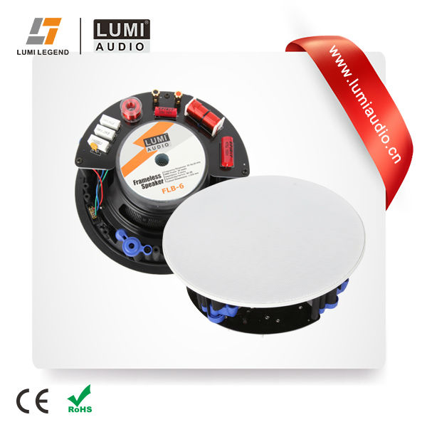 The FLB-6 is a 2-way ceiling speaker with a high quality 6.5" Woven Glass Fiber woven cone woofer and a 1" titanium dome tweeter in a co-axial arrangement. The Woven Glass Fiber cone ensures high-quality, long-lasting sound that will bring movie action and music vocals to life. The 1-inch titanium dome tweeter offers the smoothest high frequency response. The high-grade rubber edge allows for true audio accuracy and quality that will last. The FLB-6 is designed for optimal performance in a wide variety of home entertainment applications, from providing relaxed background music to a high impact home theater system. The sophisticated crossover works to deliver deep bass and exceptional top-end frequency response. Efficient and quick installation using improved swing-out dog legs and a frameless design. Micro edge magnetic grills provide for an unobtrusive appearance while allowing these speakers to fit beautifully in any interior design.