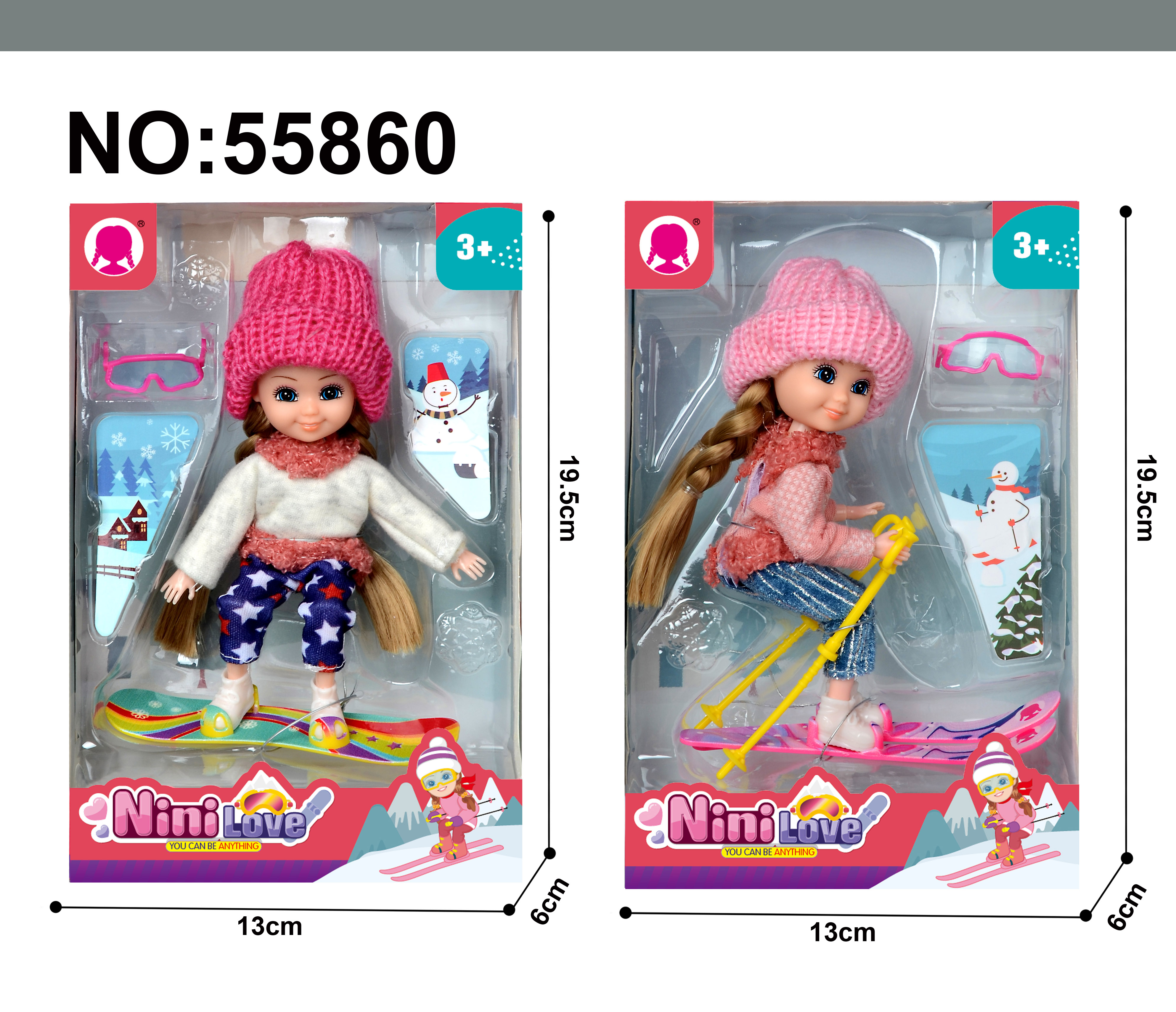 6 in Knuckie doll with winter hat clothes scarf skis skates set ( assorted styles )