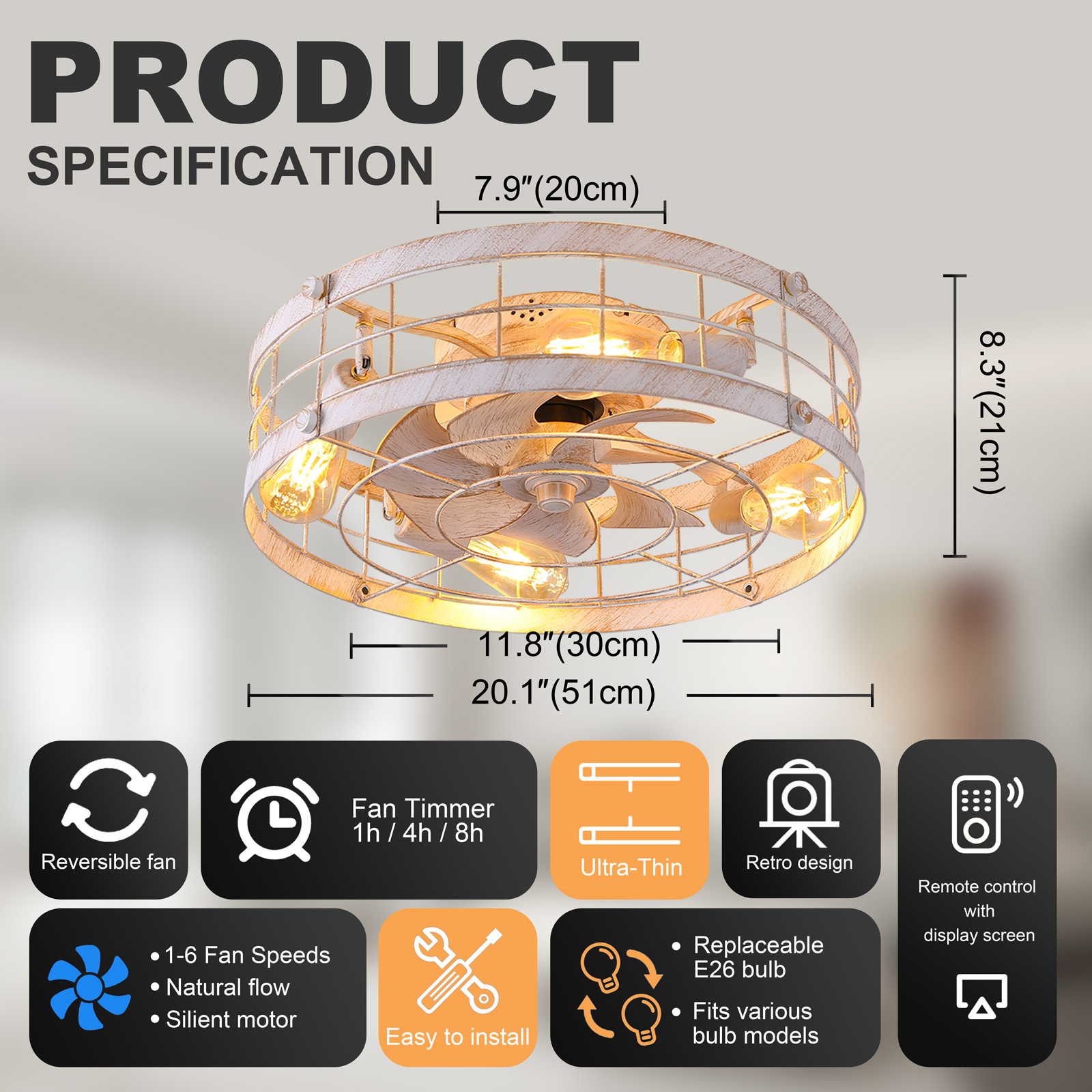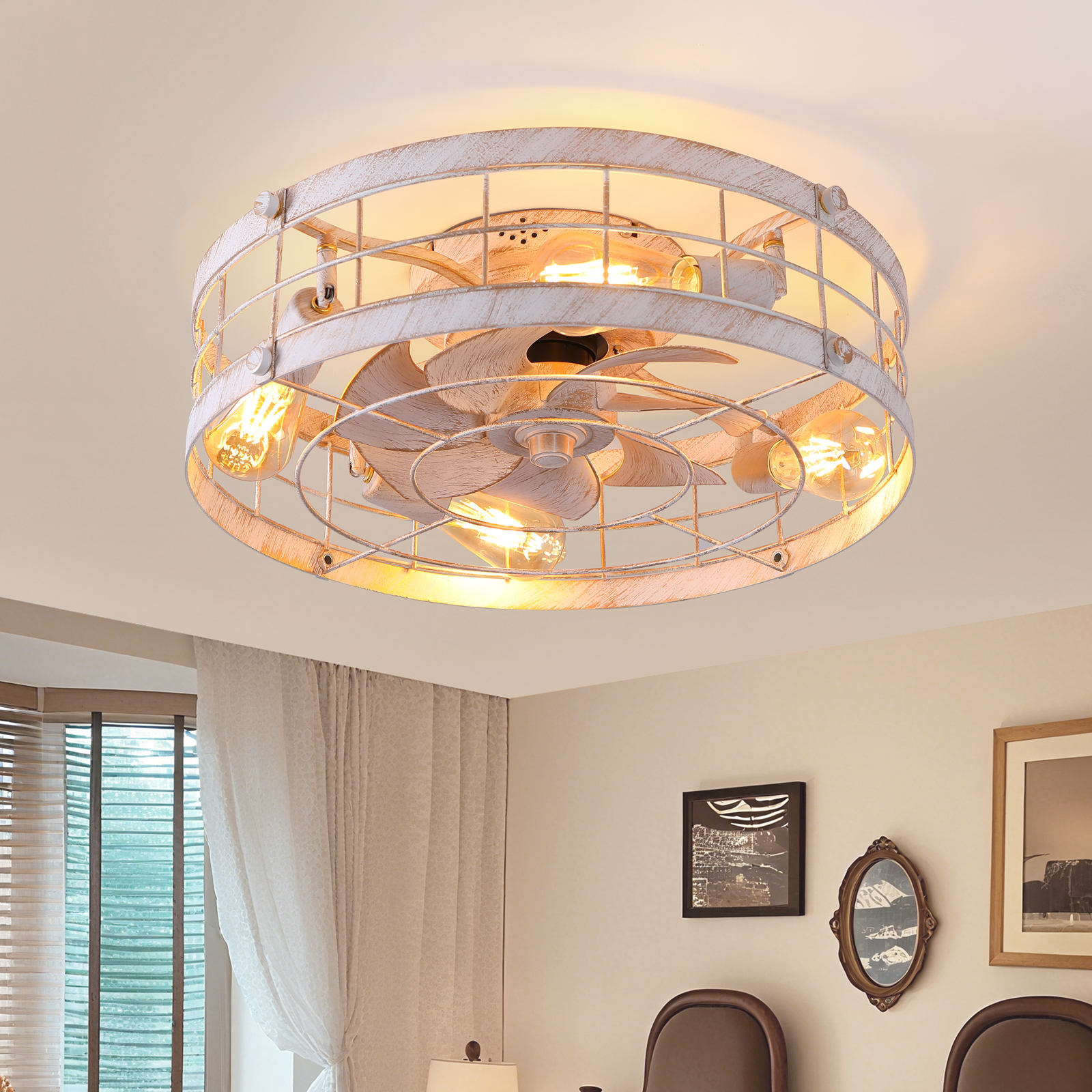 caged ceiling fan with light