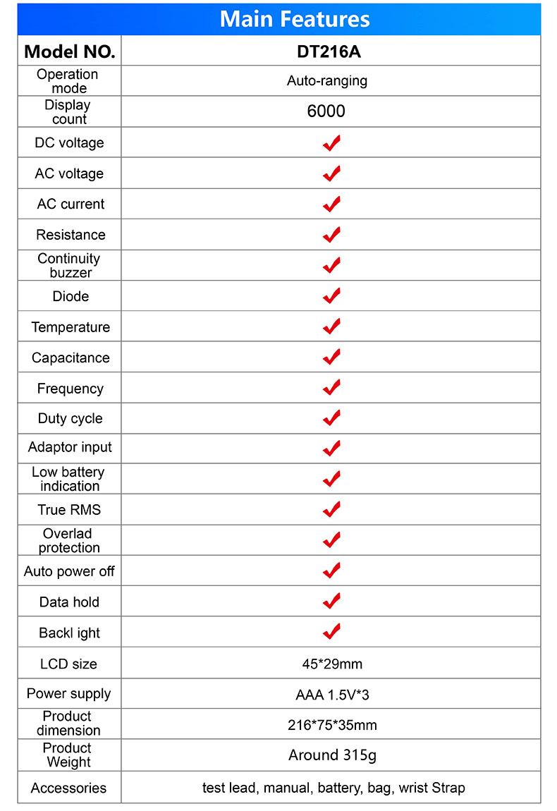 6000 Counts NEW True RMS Digital Clamp Meter DT216A
