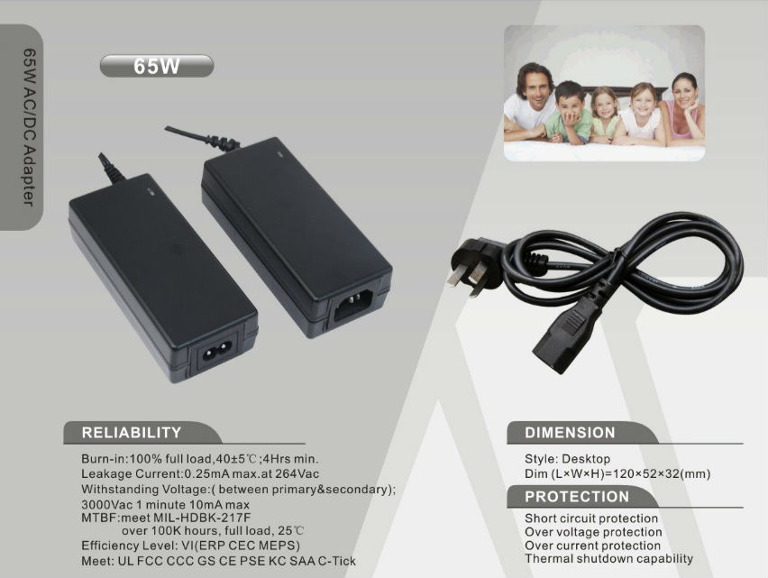 • 12V5A laptop adapters for PC, PDA