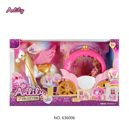 636006 ANLILI 11.5-INCH PHYSICAL DOLL ELECTRIC FLYING HORSE+CARRIAGE (HORSE HOOF SOUND+MUSIC) 4 AA WITHOUT ELECTRICITY (BROWN SKIN)