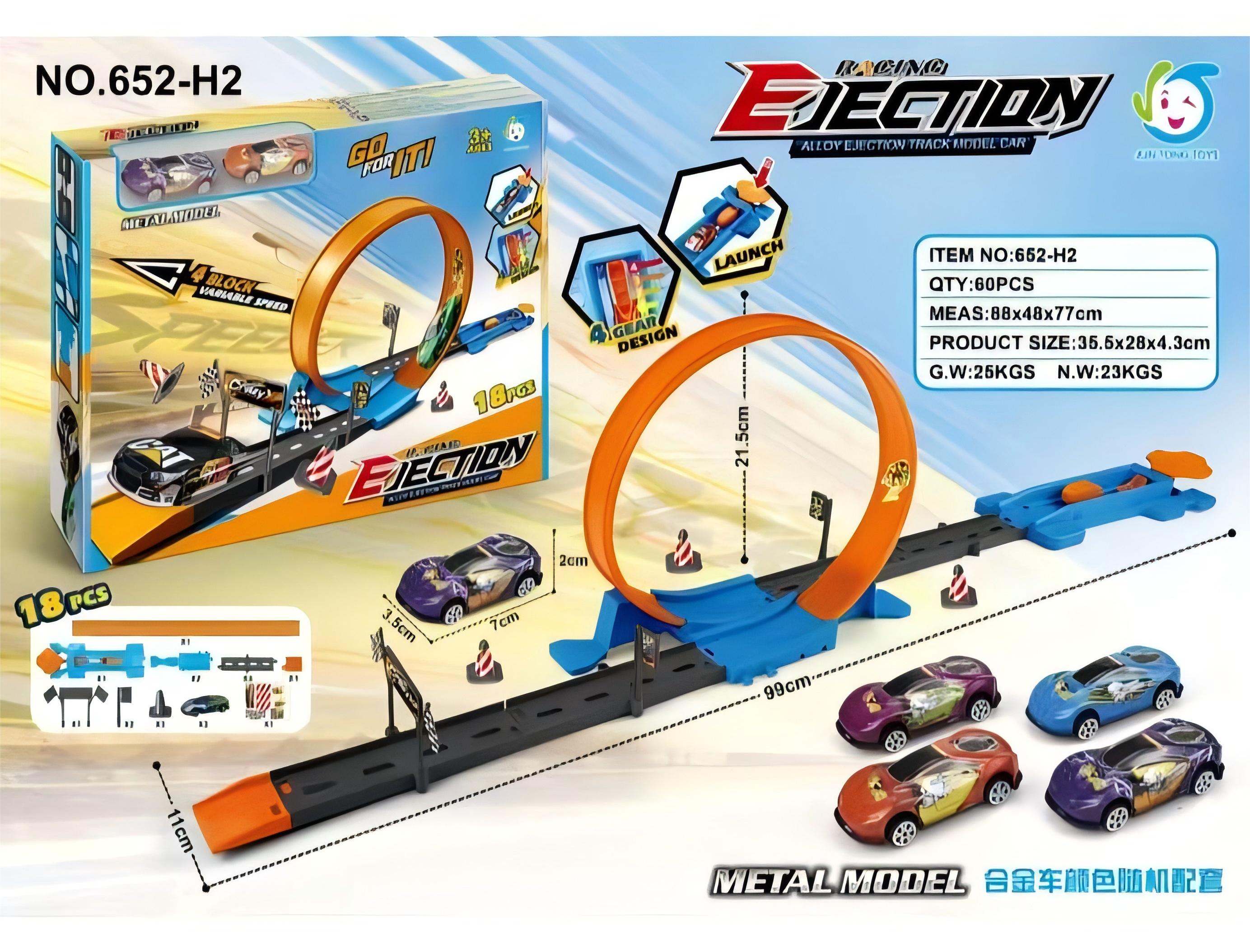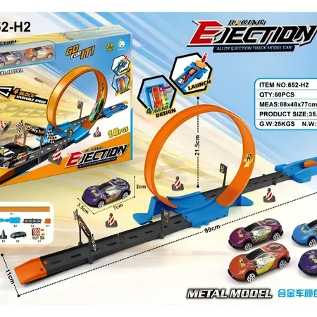 Ejection track car with 2 iron sliding racing cars