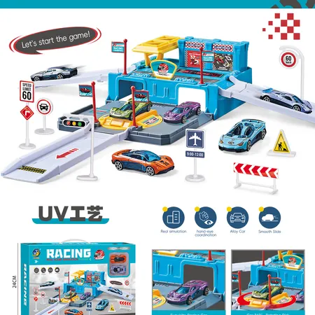 Themed parking lot - track racing base with 2 sliding alloy cars