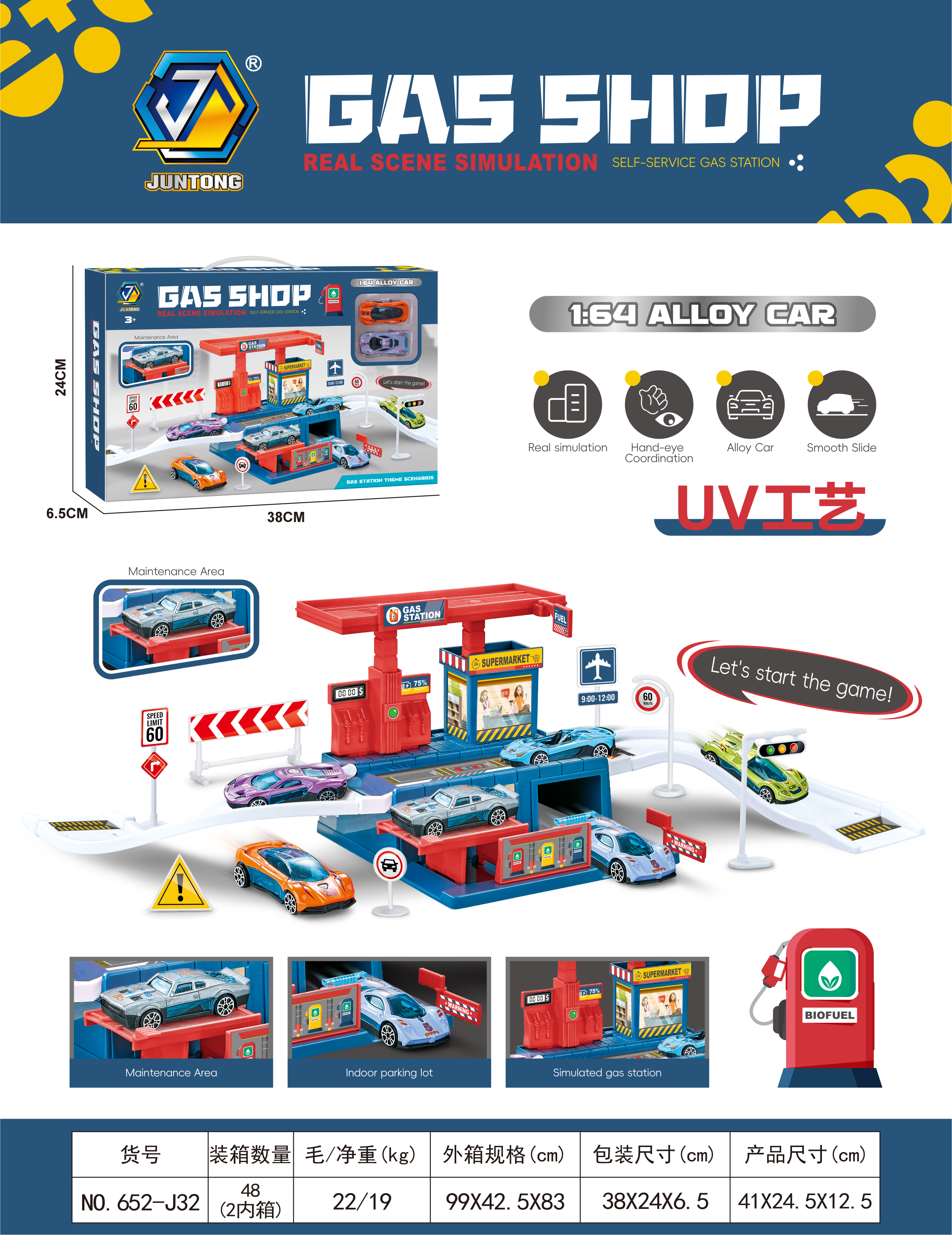 Car gas station and maintenance station with 2 free wheel alloy cars