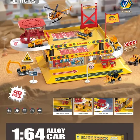 40PCS Engineering Theme 3-Layer Track Parking Lot with 2 Sliding Alloy Cars + 1 Alloy Plane