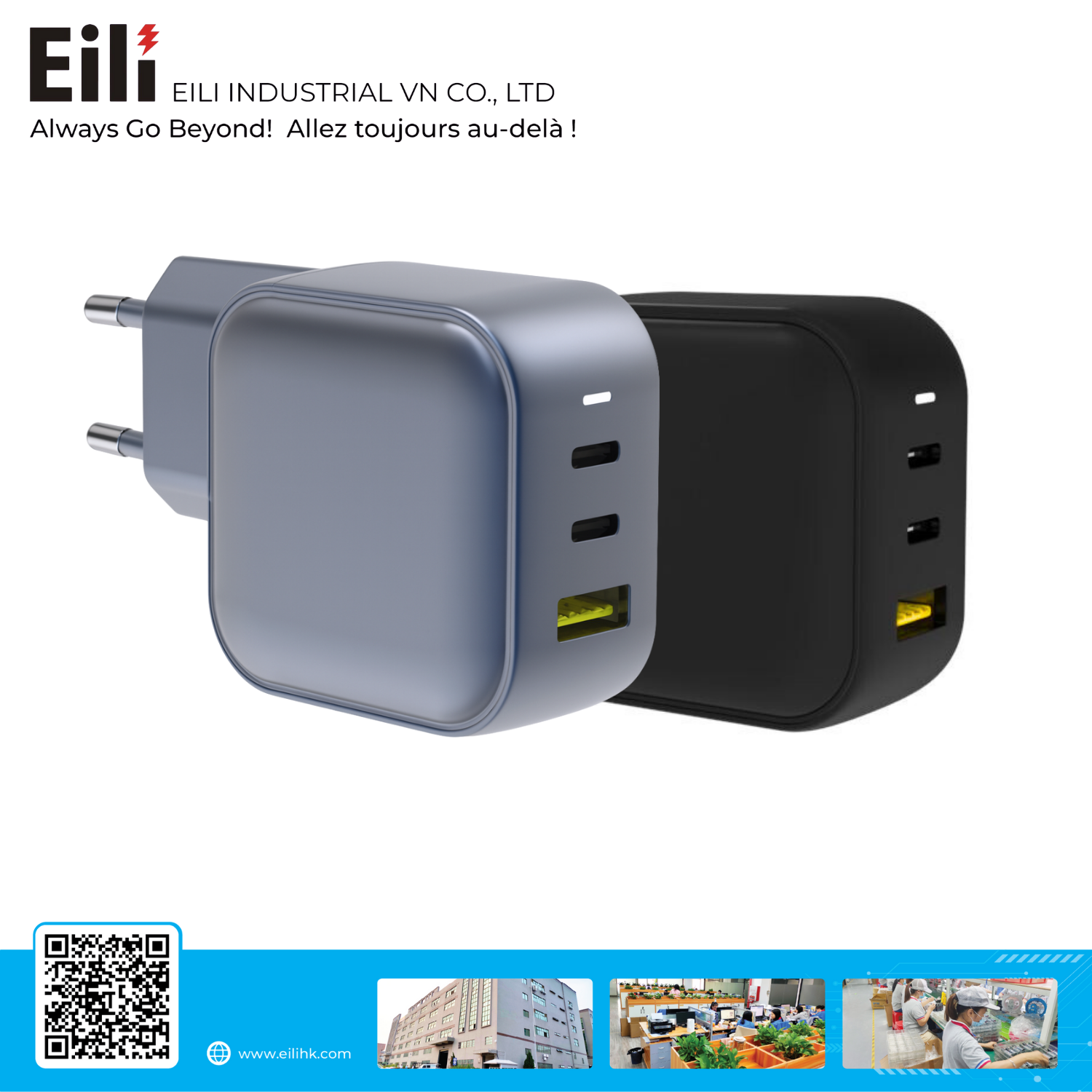 The 65W USB-C Charger with dual USB-C ports and one USB-A port provides efficient and versatile charging for multiple devices simultaneously. Supporting Power Delivery (PD) 3.0 and Quick Charge (QC) protocols, it ensures optimized performance for laptops, tablets, smartphones, and other USB-powered devices. Compact and durable, this charger is perfect for home, office, and travel use.