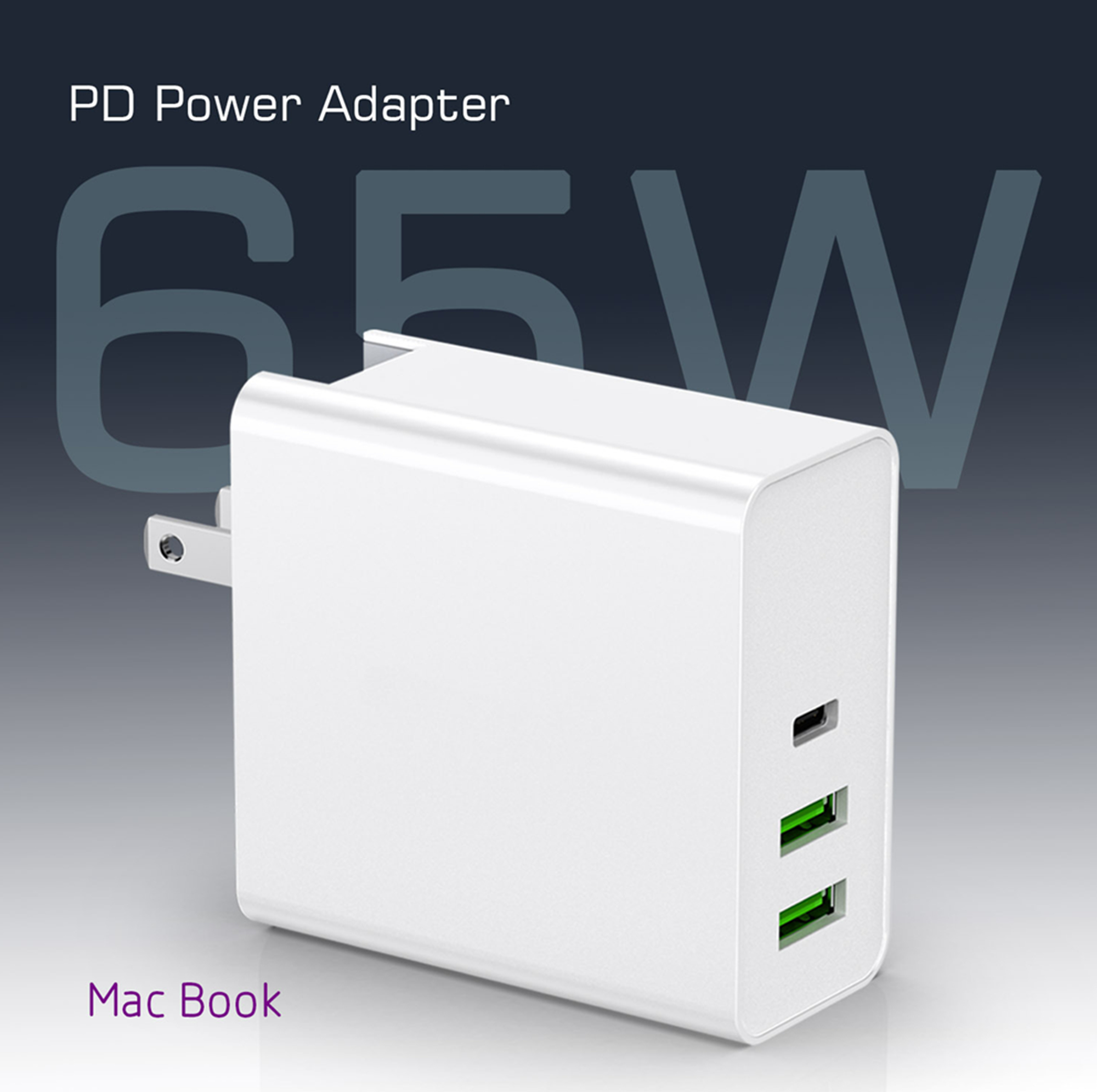 65W Travel Adapter Power Supply Unit PD65W + 2USB12W