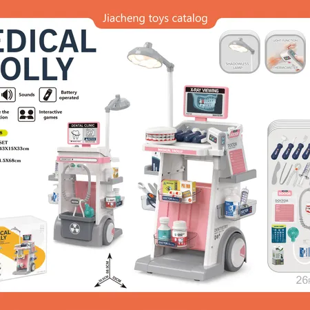 660-98 DENTAL MEDICAL CART SET (WITH LIGHTS AND SOUNDS, 2 AAA AND 2 AA BATTERIES NOT INCLUDED) PINK
