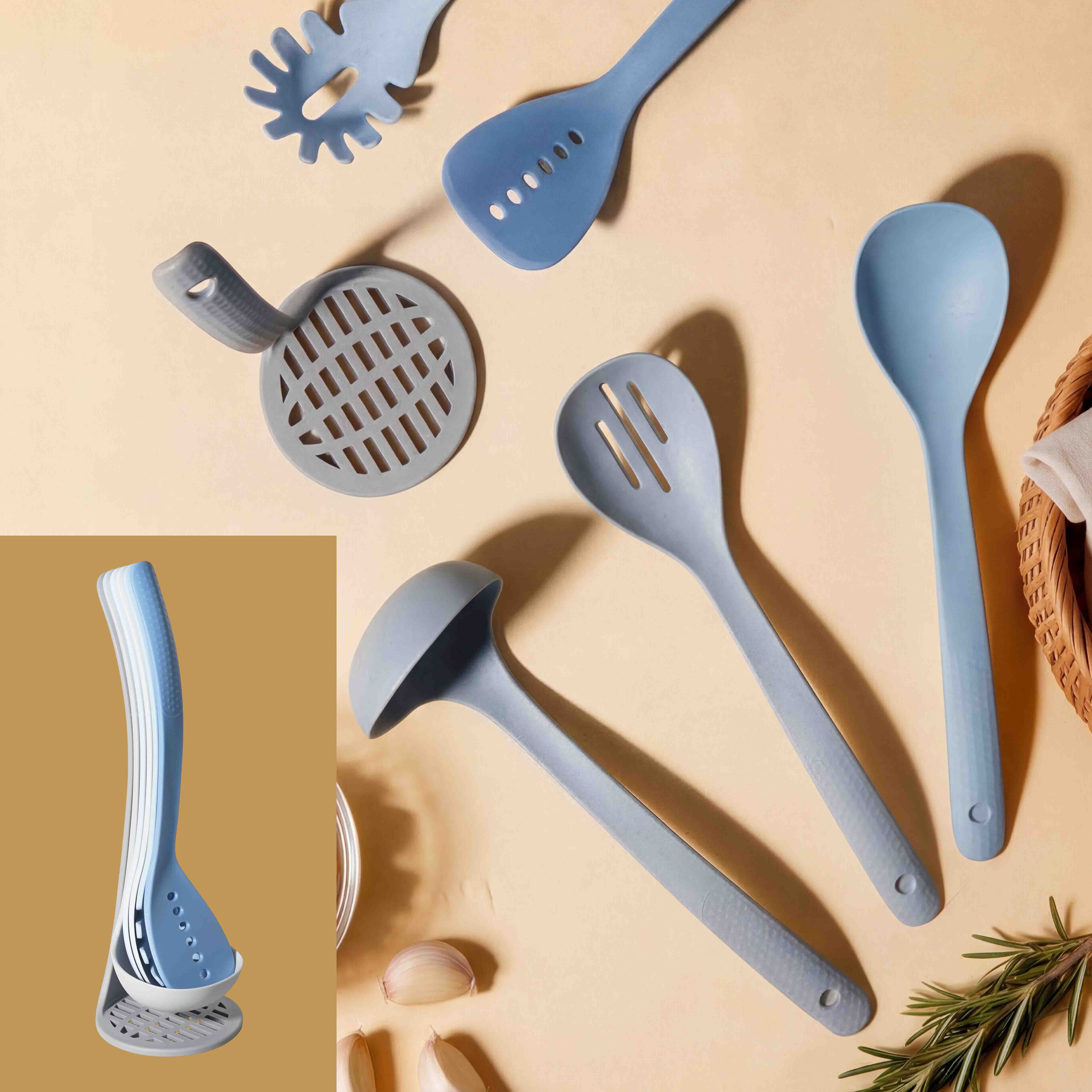 6-Piece 100% Eco-Friendly Non-Stick Nylon Kitchen Utensil Set Spatula Spoon Rack High Heat Resistant Food Safe Dishwasher