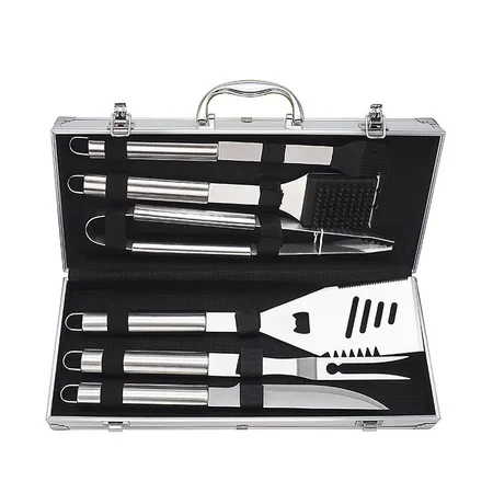 6pcs Stainless steel bbq tools set include fork,spatula,tong,knife,silicone brush,cleaning brush