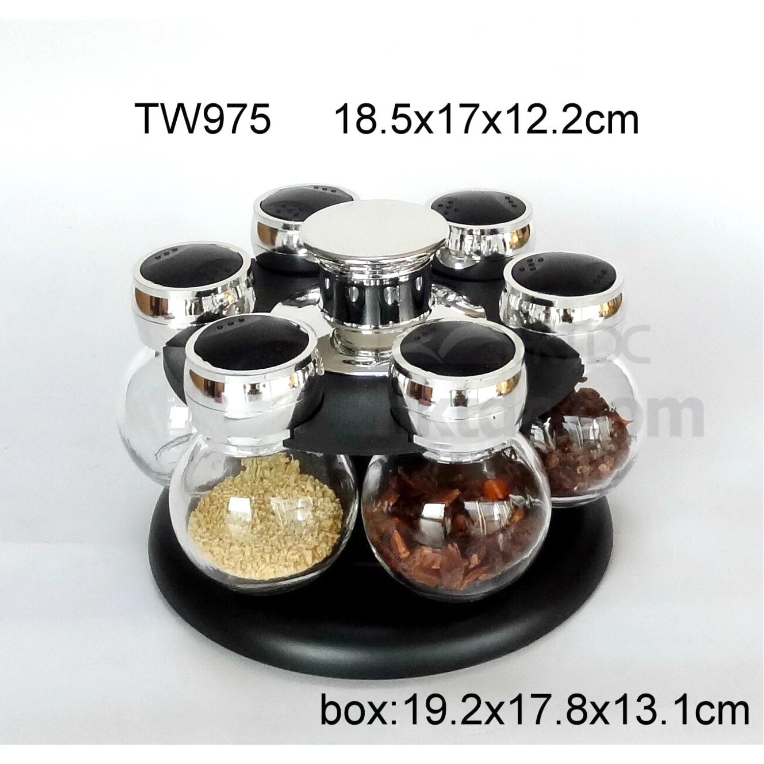Description: 6pcs glass spice jar set with plastic lids and revolving rack