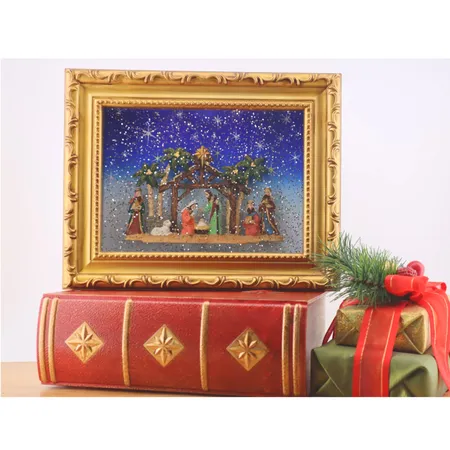 7.5"H Christmas Nativity Lighted Table Piece Musical Water Globe Frame with Swirling glitter Battery Operated & Timer