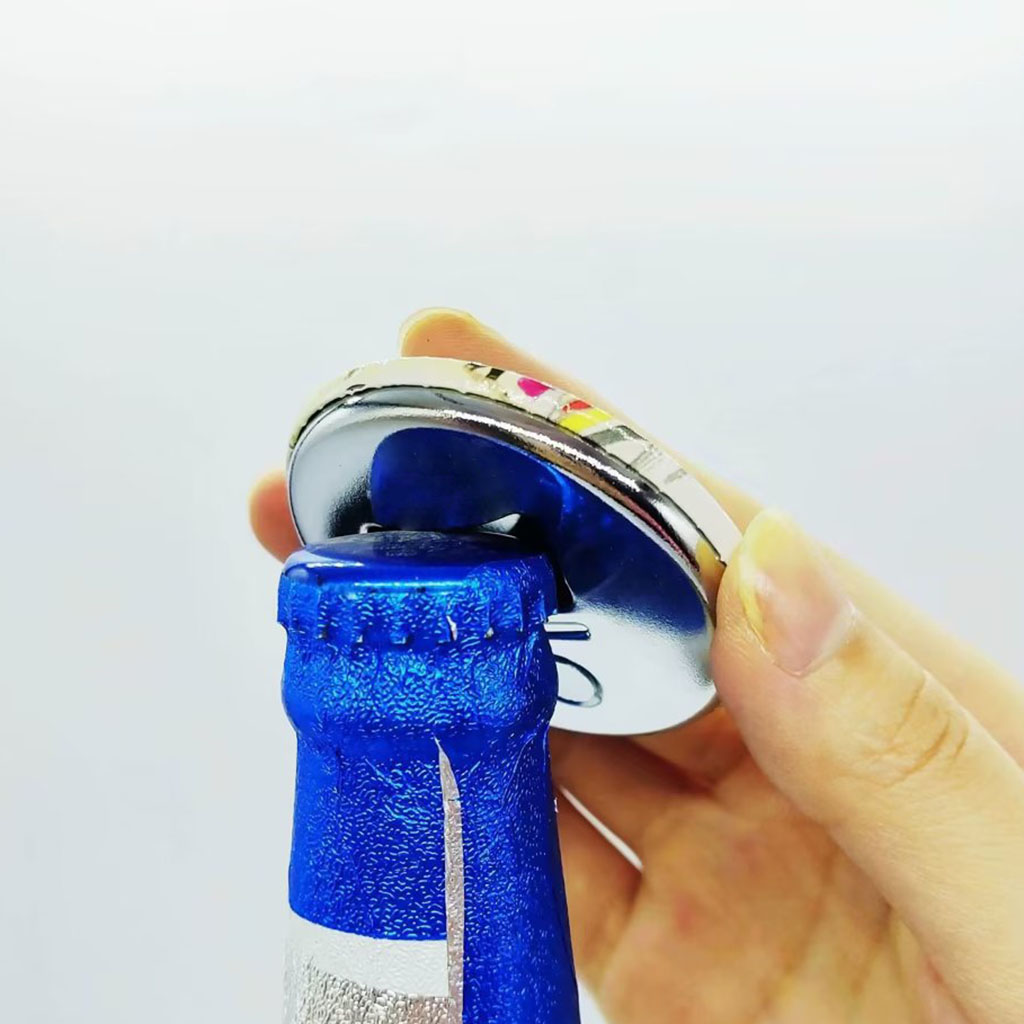 7.5 cm Round-shape Magnet Pin Bottle Opener includes the following features :