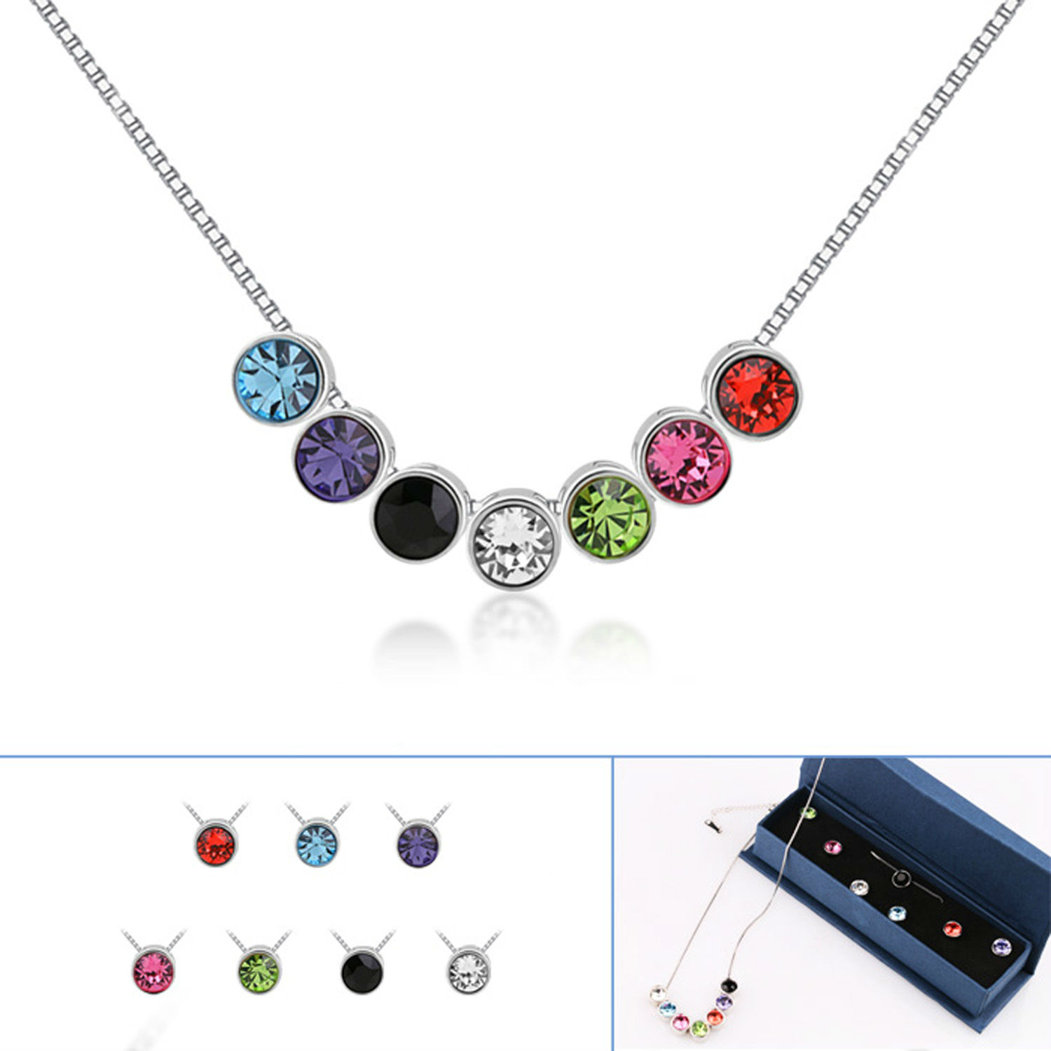 7 Color Crystal Necklace, 1 Color for 1 Day. 1 Week Necklace for Office Lady