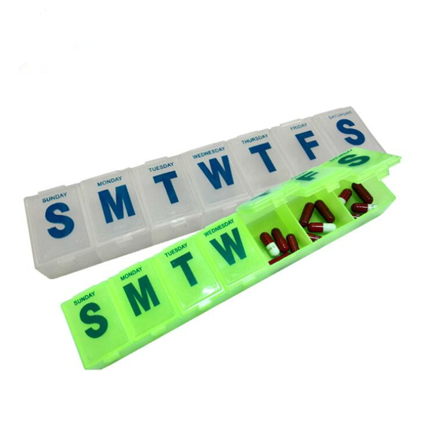 This is 7days medicine arranged box, rectangular shape design, it's very convenient for your travel or outdoor activity, it's also retails' good promotional gits.