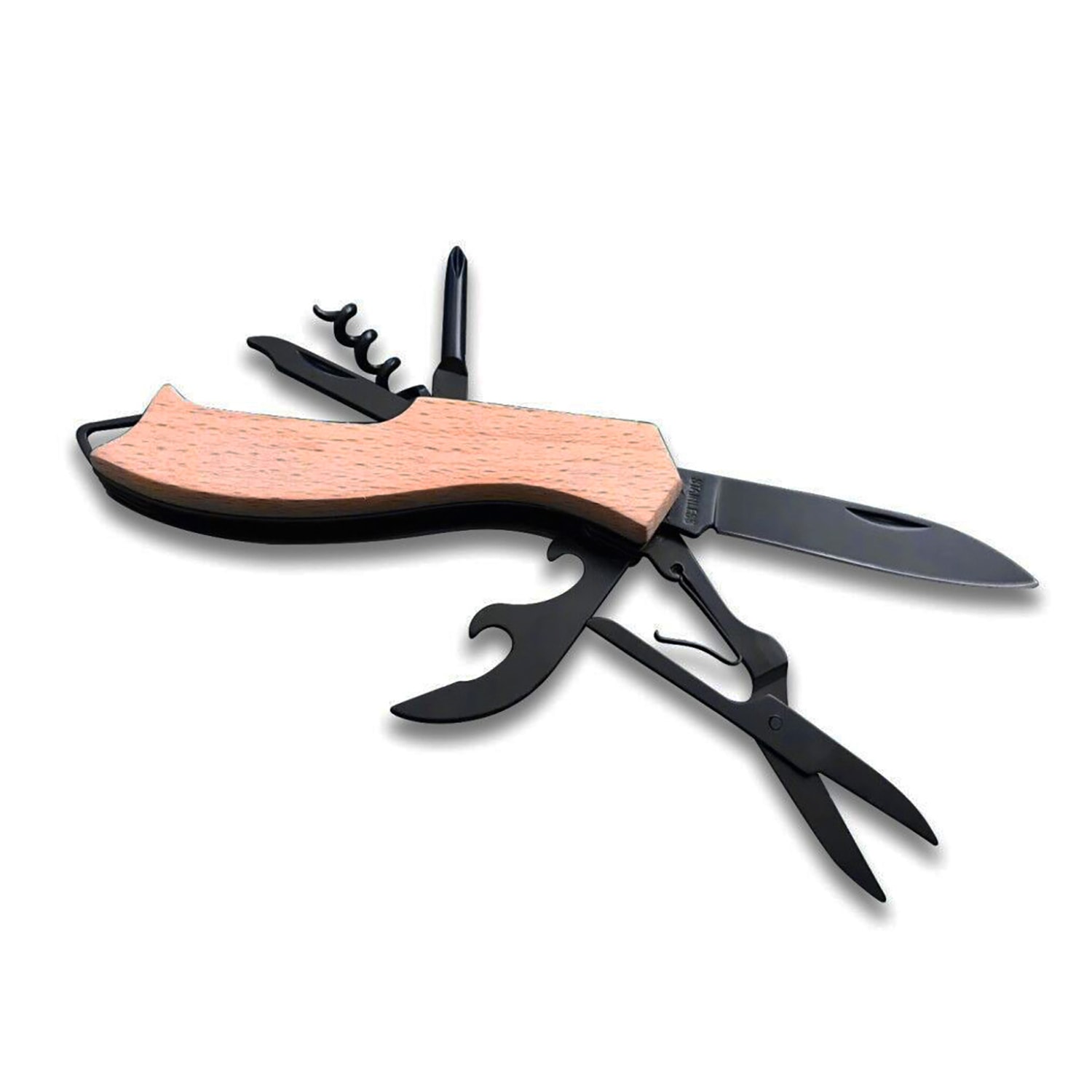 7-Functional Pocket Knife with Wooden Handle includes the following features :
