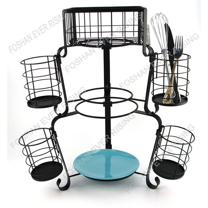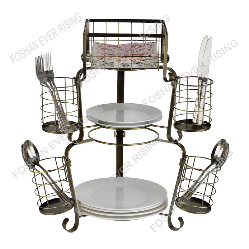 1.  Includes: 1 - Dinner plate stand, 1 - Dessert plate stand, 1- Napkin basket, 4 - Utensil cups