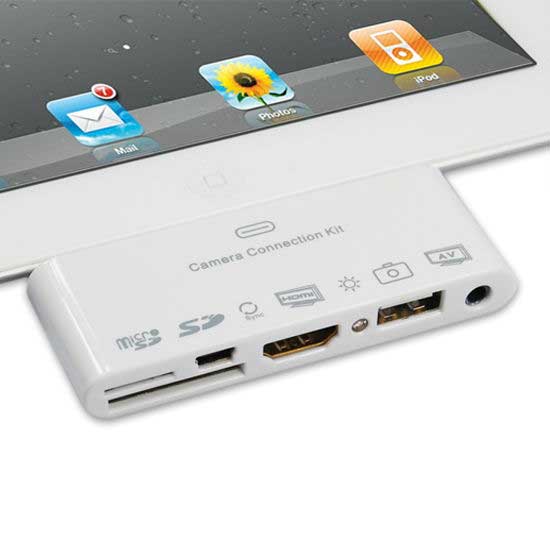 This is a 7-in-1 camera connection kit for the New iPad and other Apple devices. It is fitted with USB, mini USB, SD, micro SD, HDMI and AV interfaces for users’ convenience. This easy-to-operate camera connection kit promises plug and play.