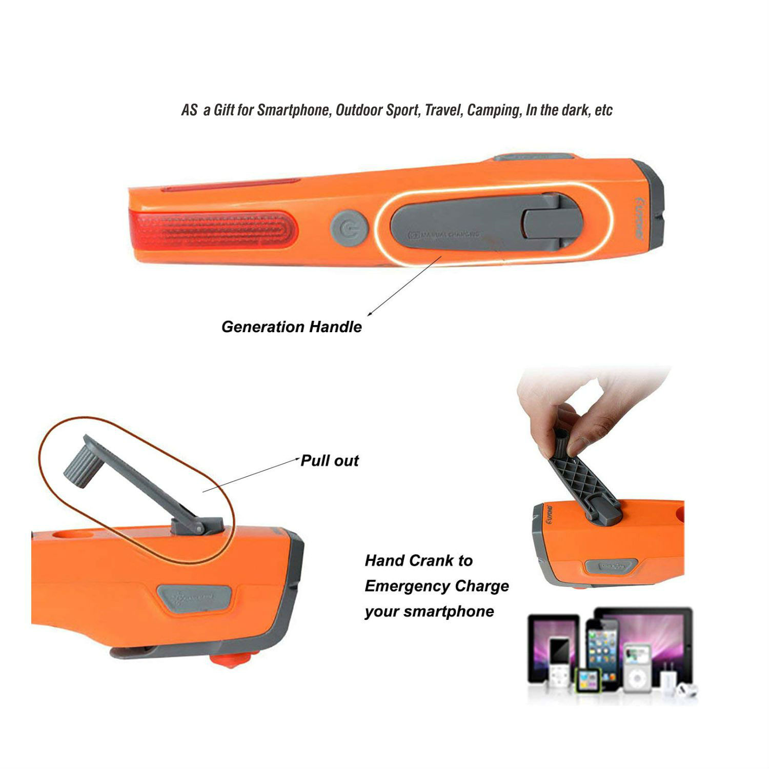 HAND CRANKING CHARGING SYSTEM: The emergency tool with USB charger and USB cable, If the emergency tool runs out of battery, it has a special skill to save itself that is Hand power generation. It can provide emergency power for most phones in an emergency circumstance.