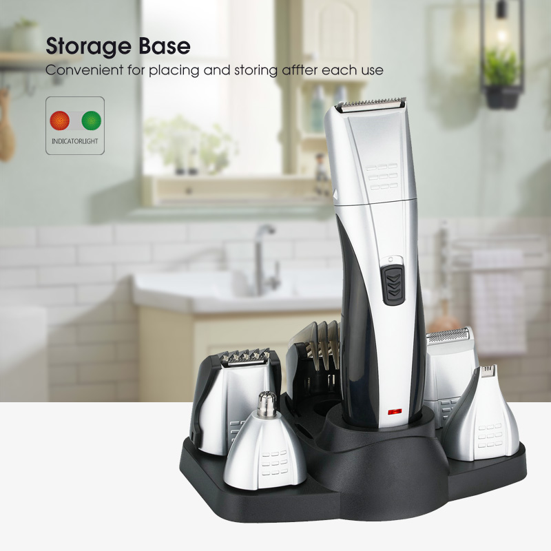 Satisfy all your grooming needs from shaving beard to trimming other body hairs with this 7-in-1 grooming kit. It includes five trimmers including a full size trimmer, a precision trimmer, a micro shaver,a detail trimmer and a nose trimmer. This amazing set helps you to keep a refreshing and handsome look every day and makes a must-have item for men to be put in the bathroom.