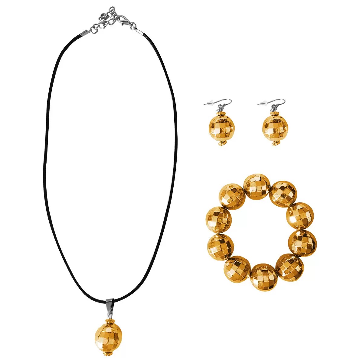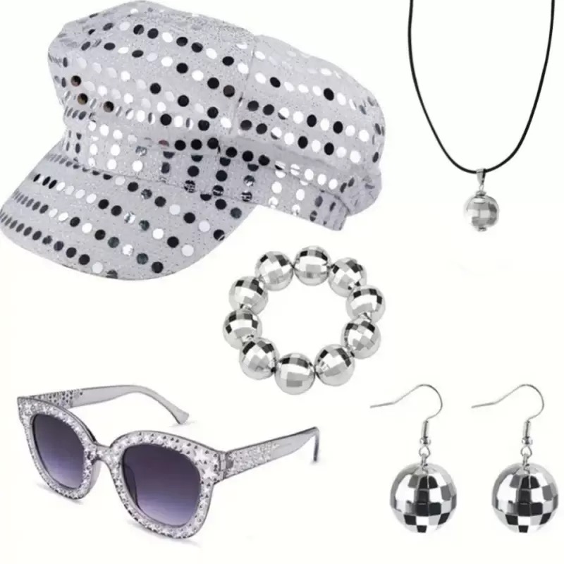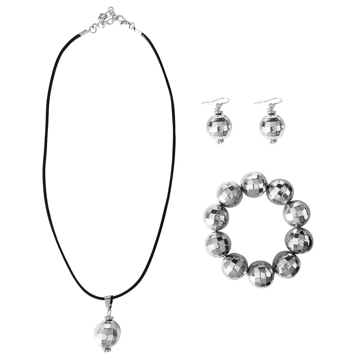 7080的迪斯科性能道具亮片铝合金几何耳环手链项链套件