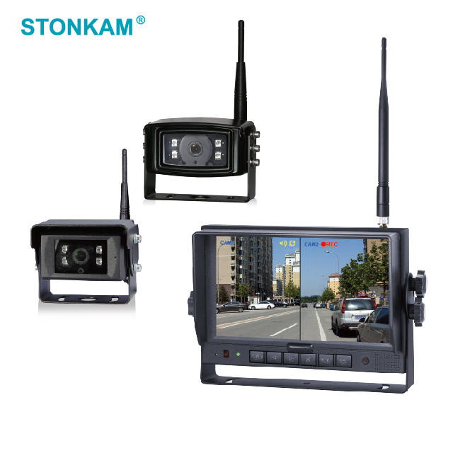 STONKAM® 7 inch Digital Wireless Backup Camera System includes a split view monitor and IP69K cameras with IR night vision. With it you can view around your vehicle easily without need of running long cables, especially good for commercial vehicles such as truck, harvester, and trailer. Click to see more STONKAM® HD wireless camera products.