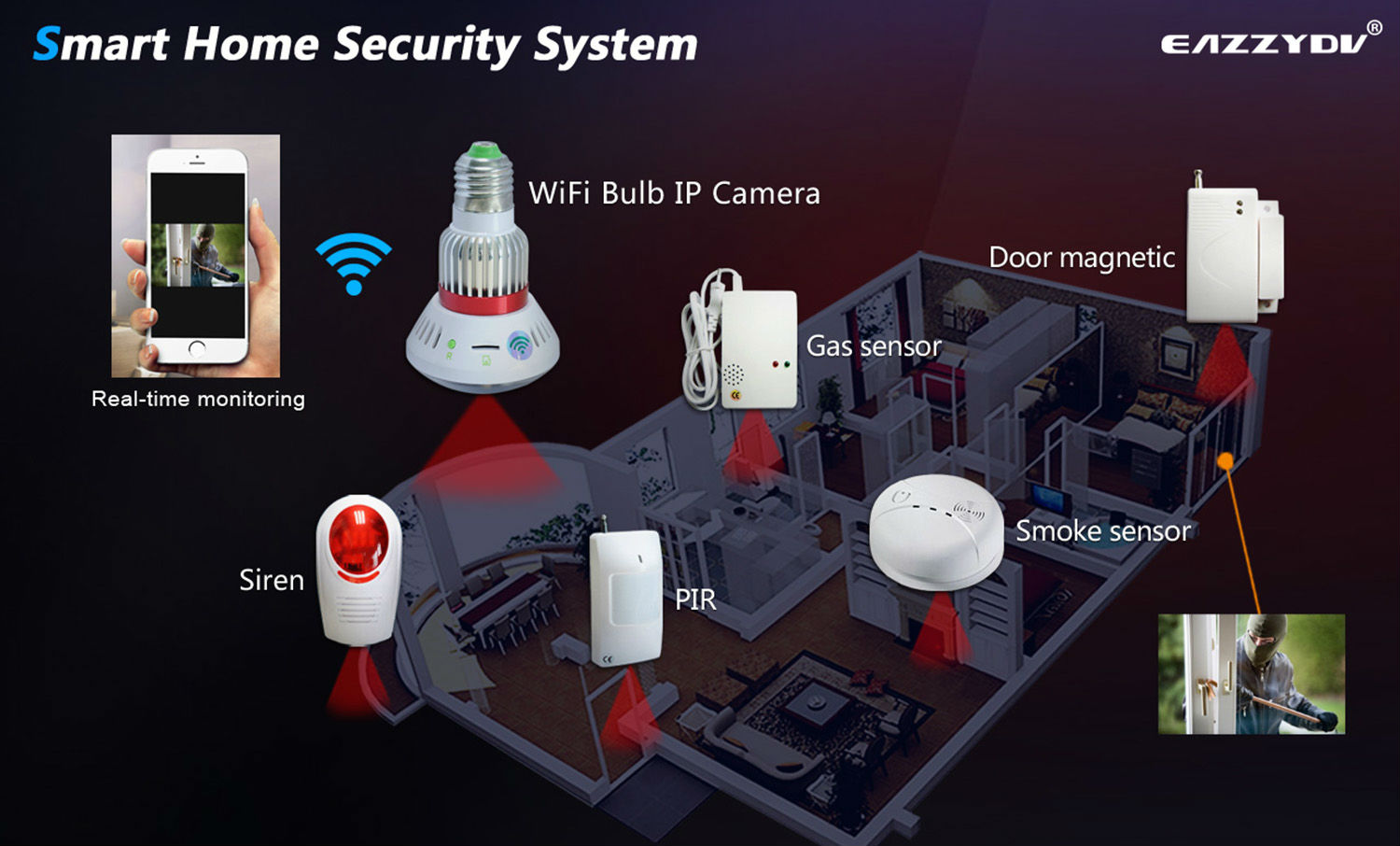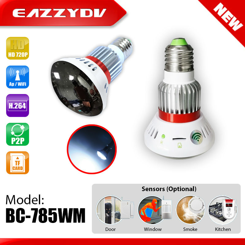 720P Mirror WiFi Light Bulb DVR Camera with 5W White Light