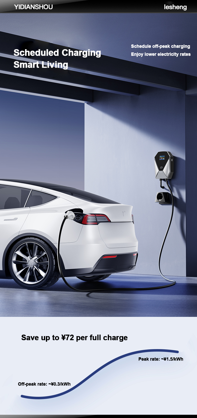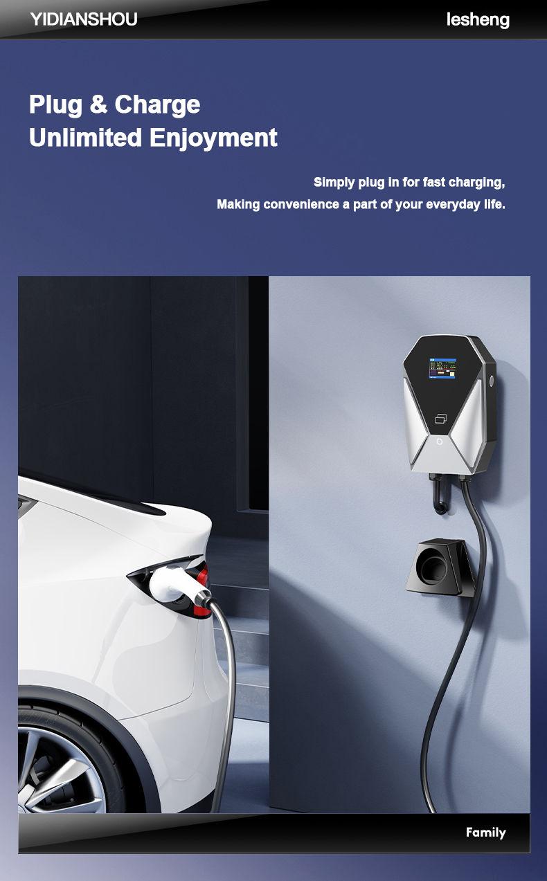 Cixi Lesheng Electrical co.Ltd AC charging pile is a piece of charging equipment developed to meet thecharging needs of new energy vehicles and is used in conjunction with electric vehicleon-board chargers to provide slow charging services for electric vehicles.This product is easyto install,portable,easy to operate,has a fashionable appearance,and is suitable for privateparking garages,public parking lots,residential parking lots,enterprise parking lots,and othertypes of open-air and indoor parking lots.Because this product is high-voltage equipment,please do not disassemble the shel or modify the wiring yourself.This charging pile adopts anintelligent type,with timing,electricity metering,optional charging,and a human-computerinteraction interface.