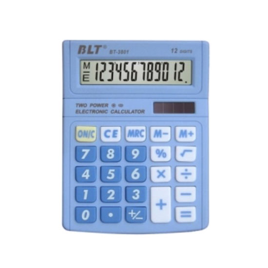 This is an 8-digit calculator with a light blue housing. It features user-friendly buttons with big marks. This calculator has a strong structure for long-lasting use.