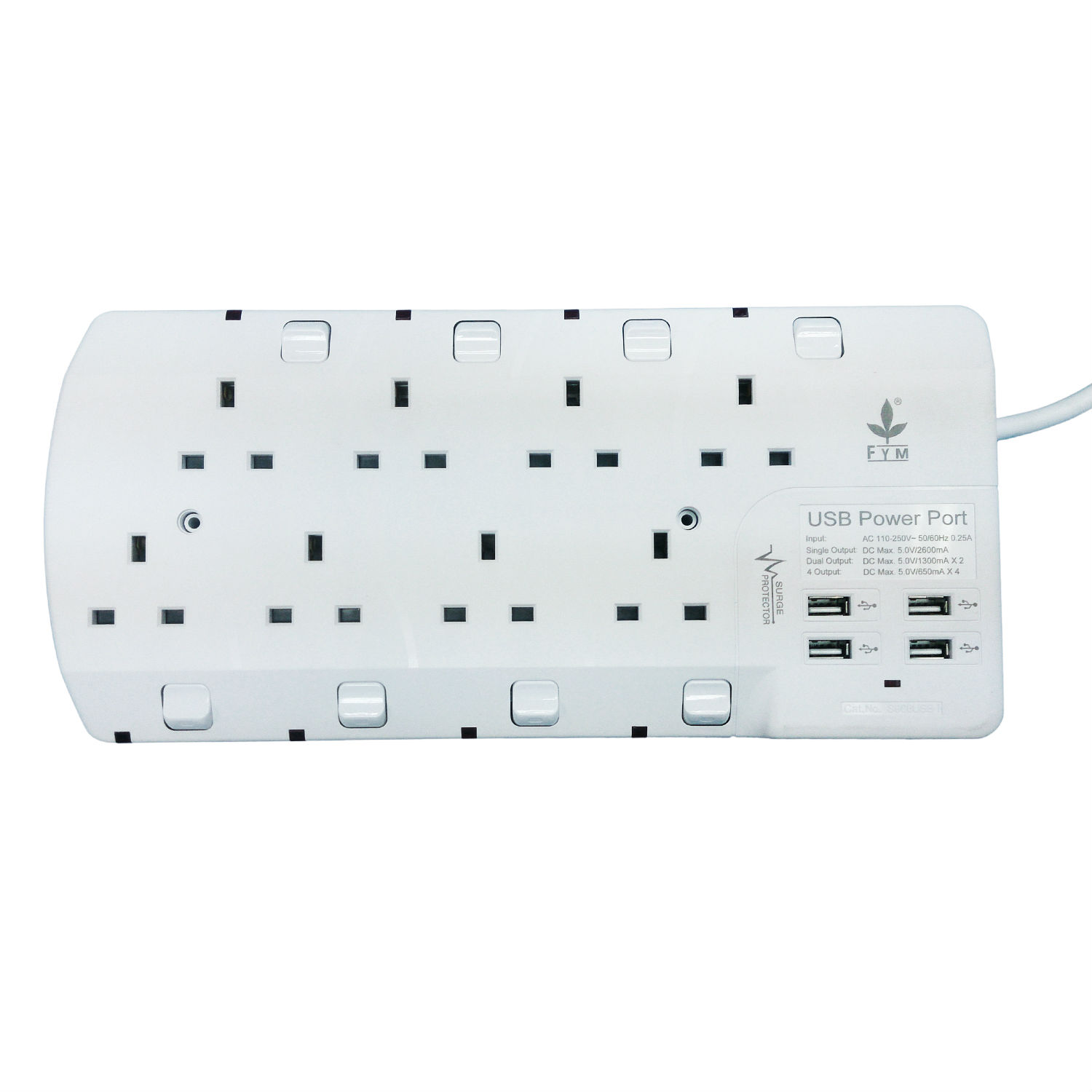 8 Gang Extension Socket Outlet with 4 USB Ports