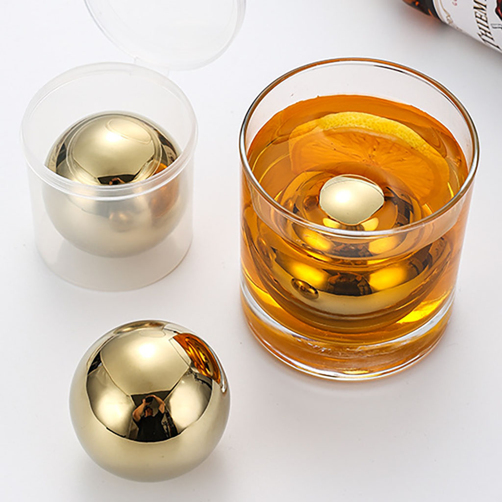 8 Pcs Dia. 3.8 cm Round-shaped Stainless Steel Whisky Ice Cube Set with Bag includes the following features :