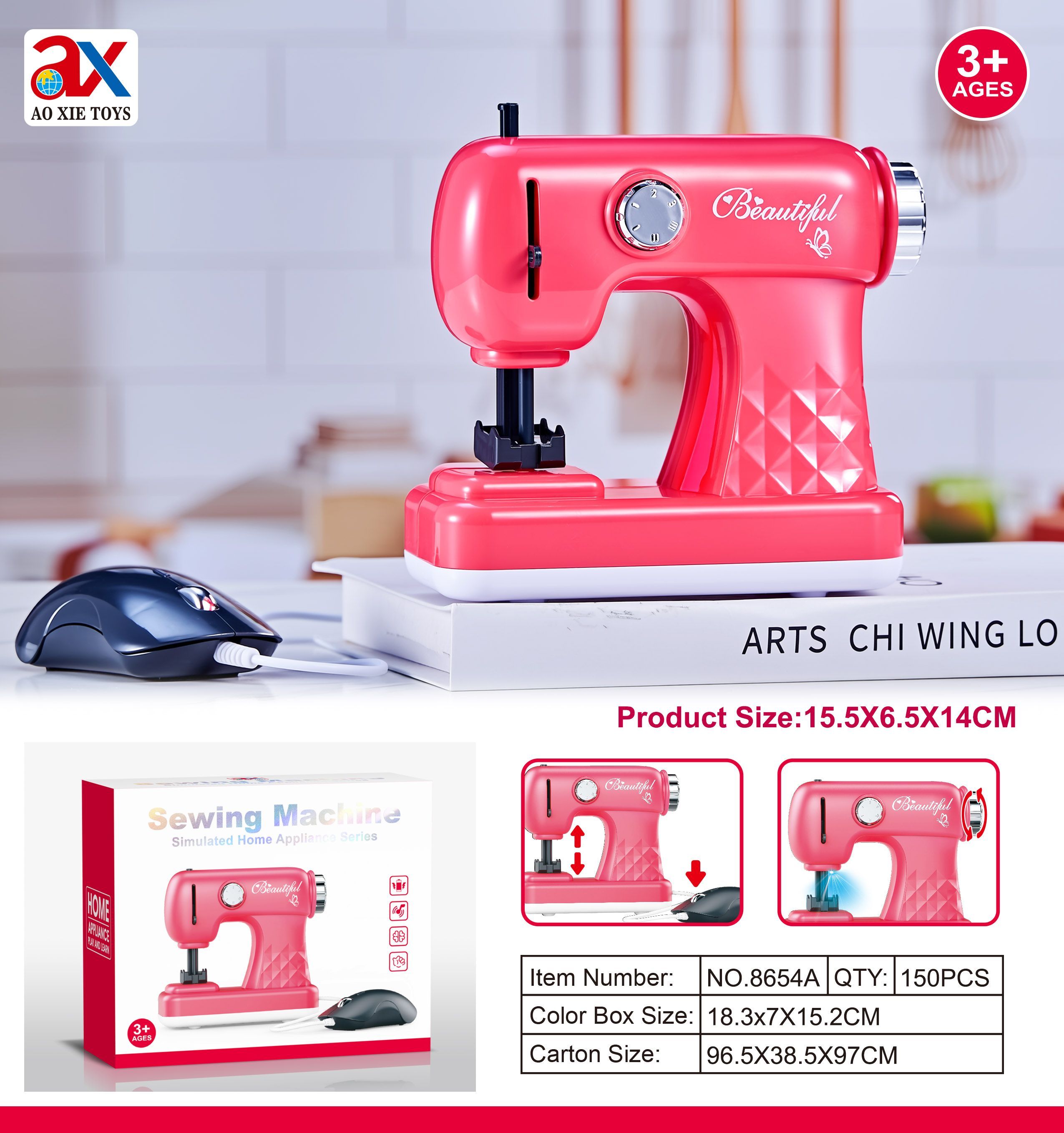 8654A SMALL SEWING MACHINE, LIGHTING, SIMULATED ACTION
