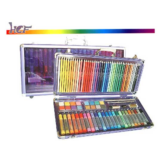 The 87-piece art kit includes 42 hand-dipped color pencils, 24 markers, 16 watercolor paints, 1 HB pencil, 1 paint brush, 1 eraser, 1 sharpener and 1 glue. They are stored in a sturdy aluminum case. This art kit is suitable for artists, schools, etc.
