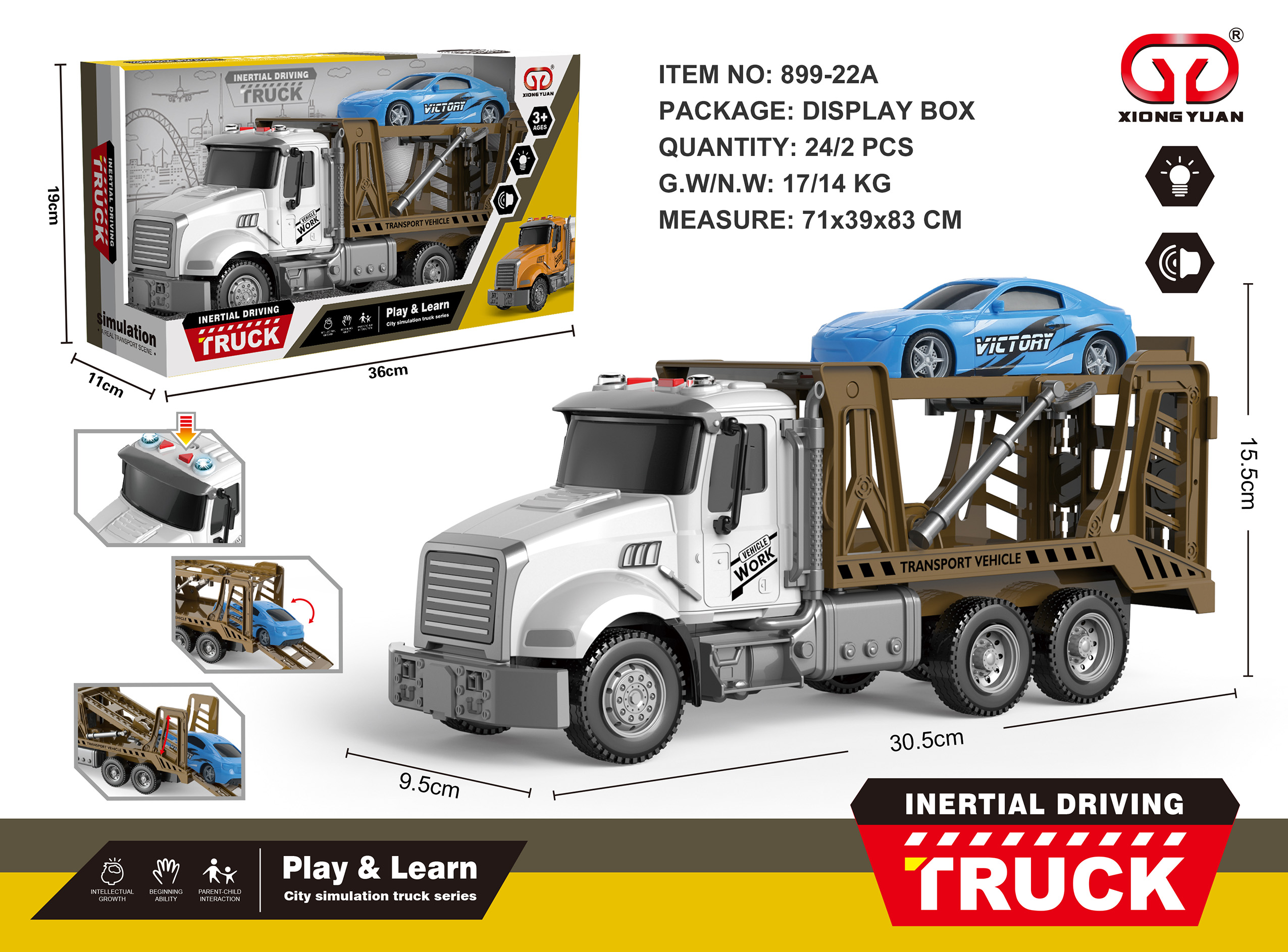 899-22A INERTIA SOUND AND LIGHT FLATBED TRUCK (PEARL WHITE)