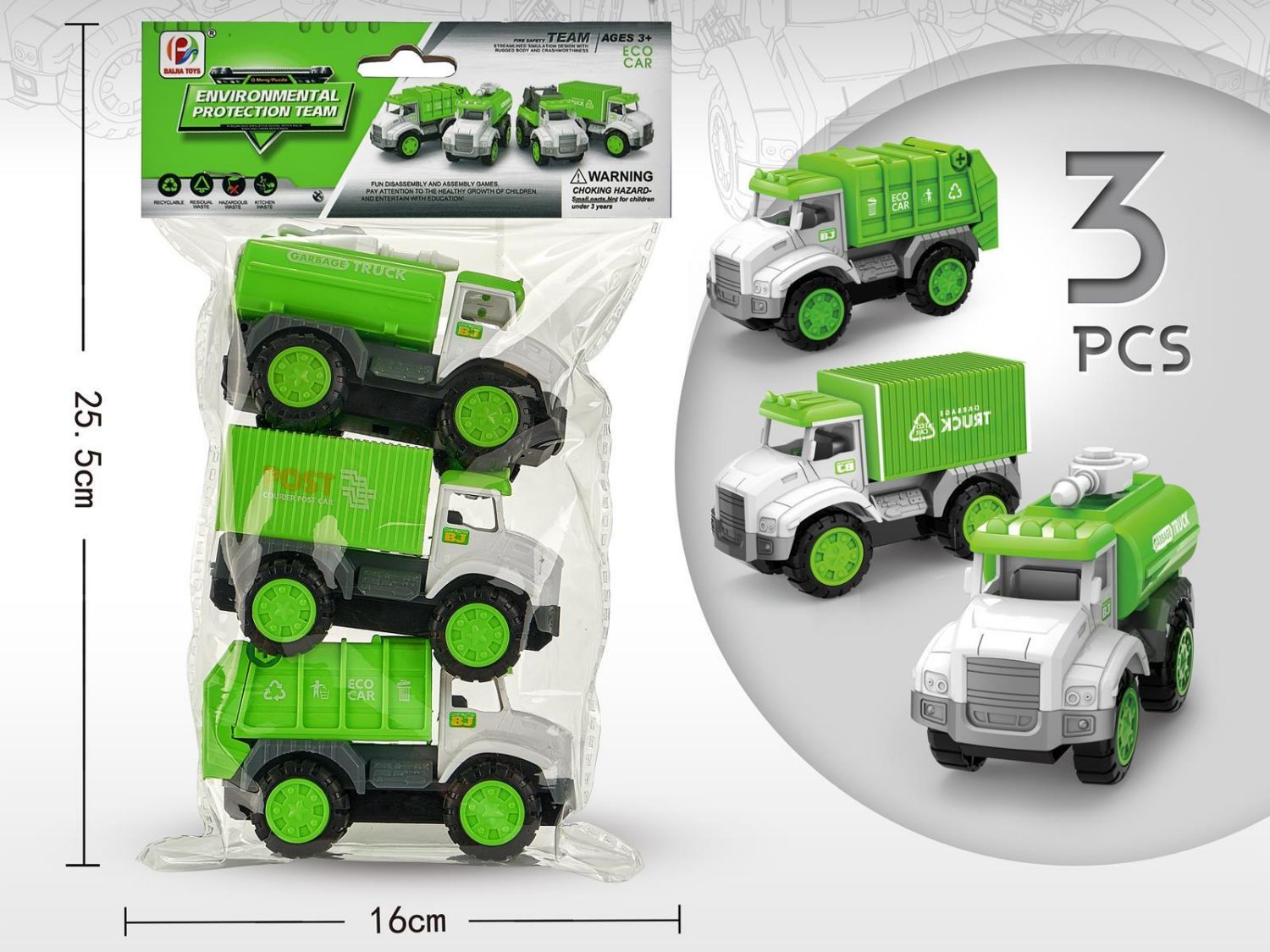 8A-S16565 FRICTION POWER SANITATION TRUCK SET-3PCS