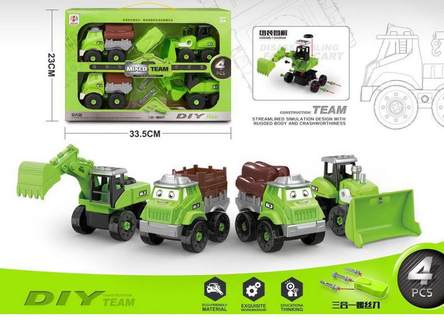 8A-S16574 FREE WHEEL SELF-ASSEMBLING FARM TRUCK SET-4PCS