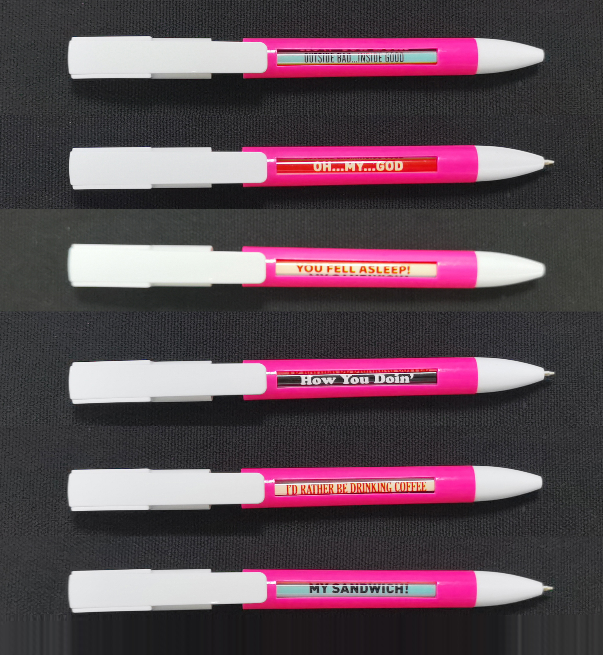 keywrord: custom window pen; custom advertising pen; logo pen; gift pen; promo pen; fair pen; corporate pen; quality pen; plastic pen; 6 message pen; rotating message pen; novelty pen;