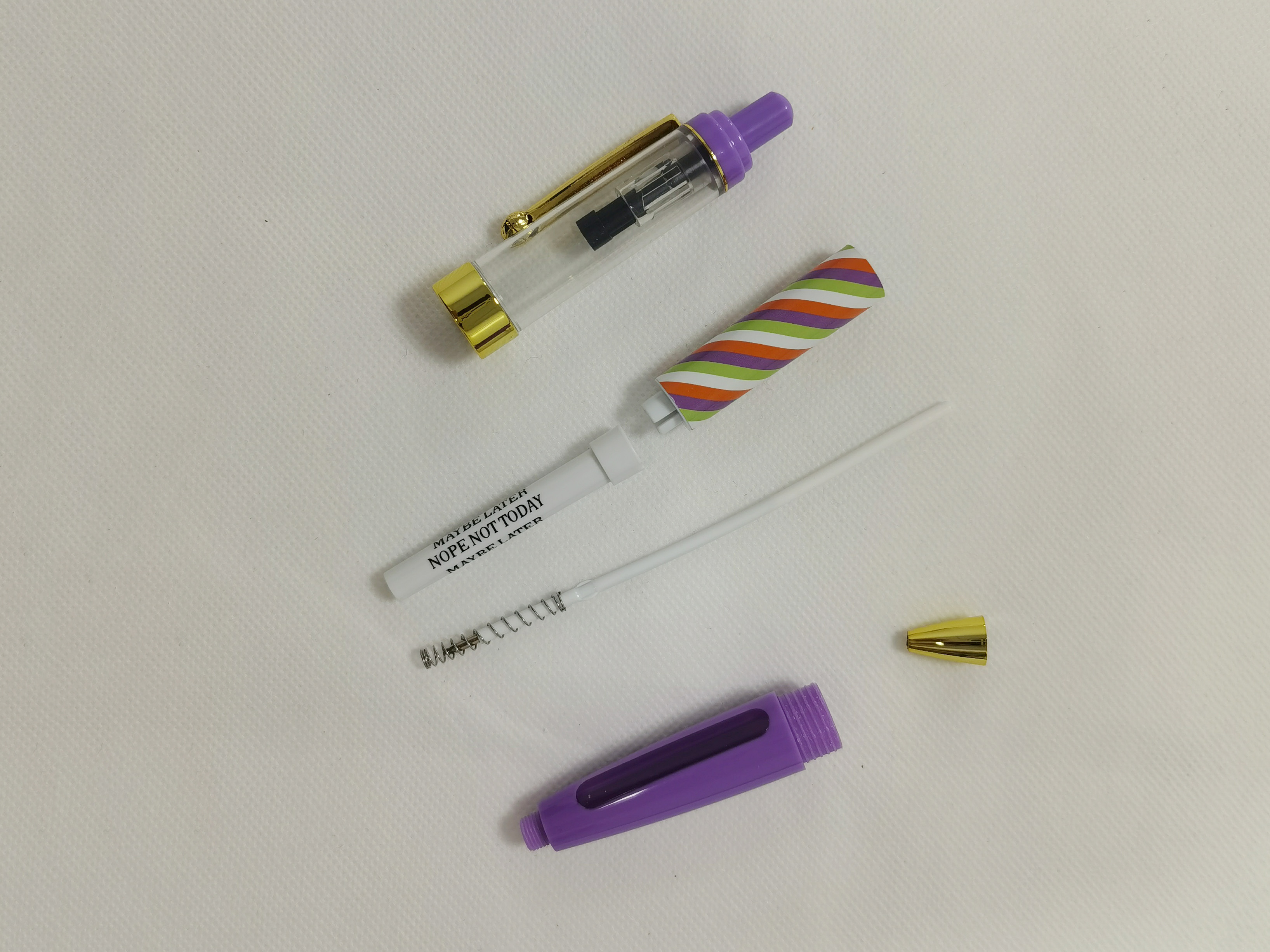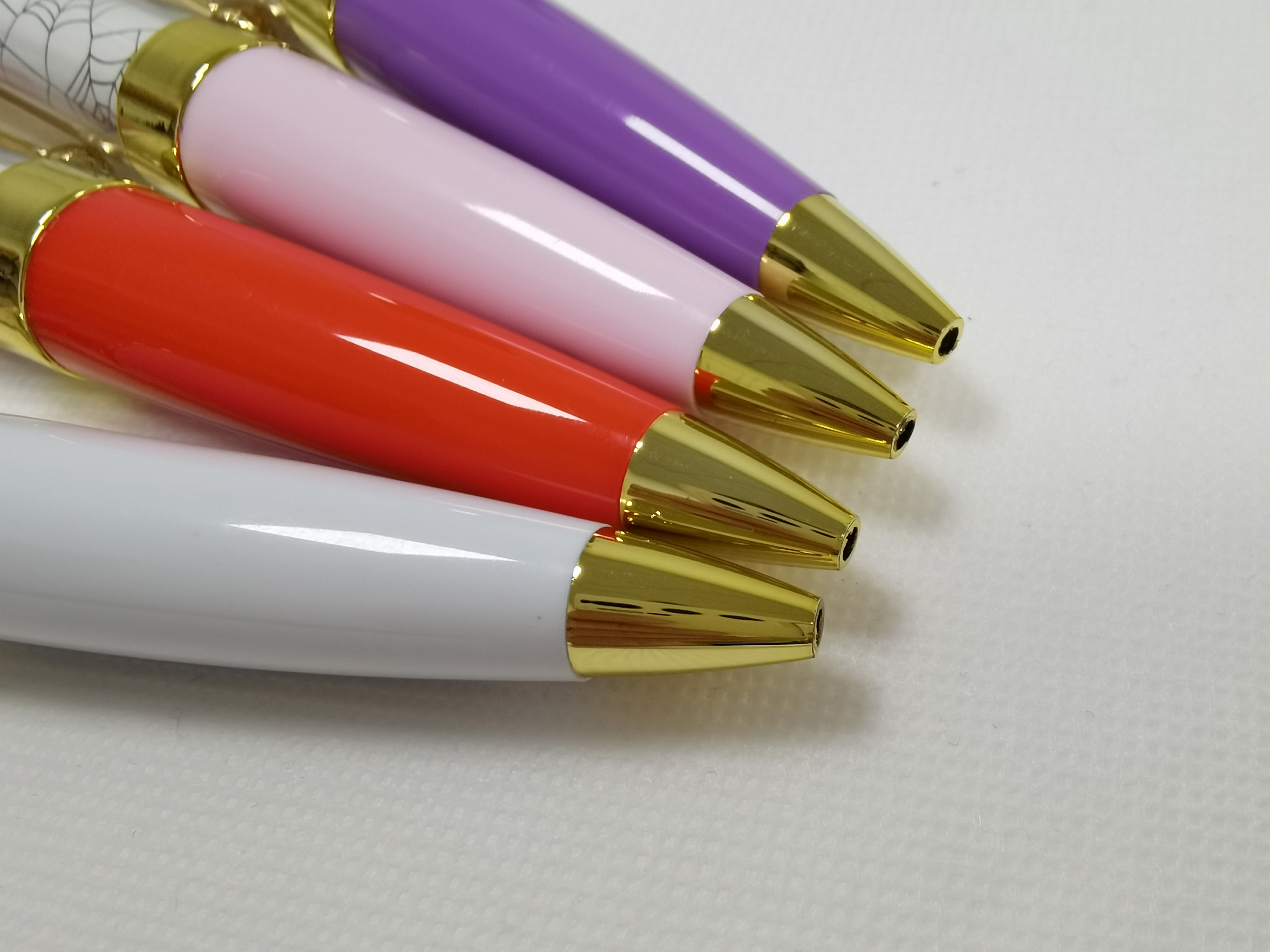 Plastic retractable window pen with 6 rotating message(lower barrel) and banner(upper barrel) inside, gold trim