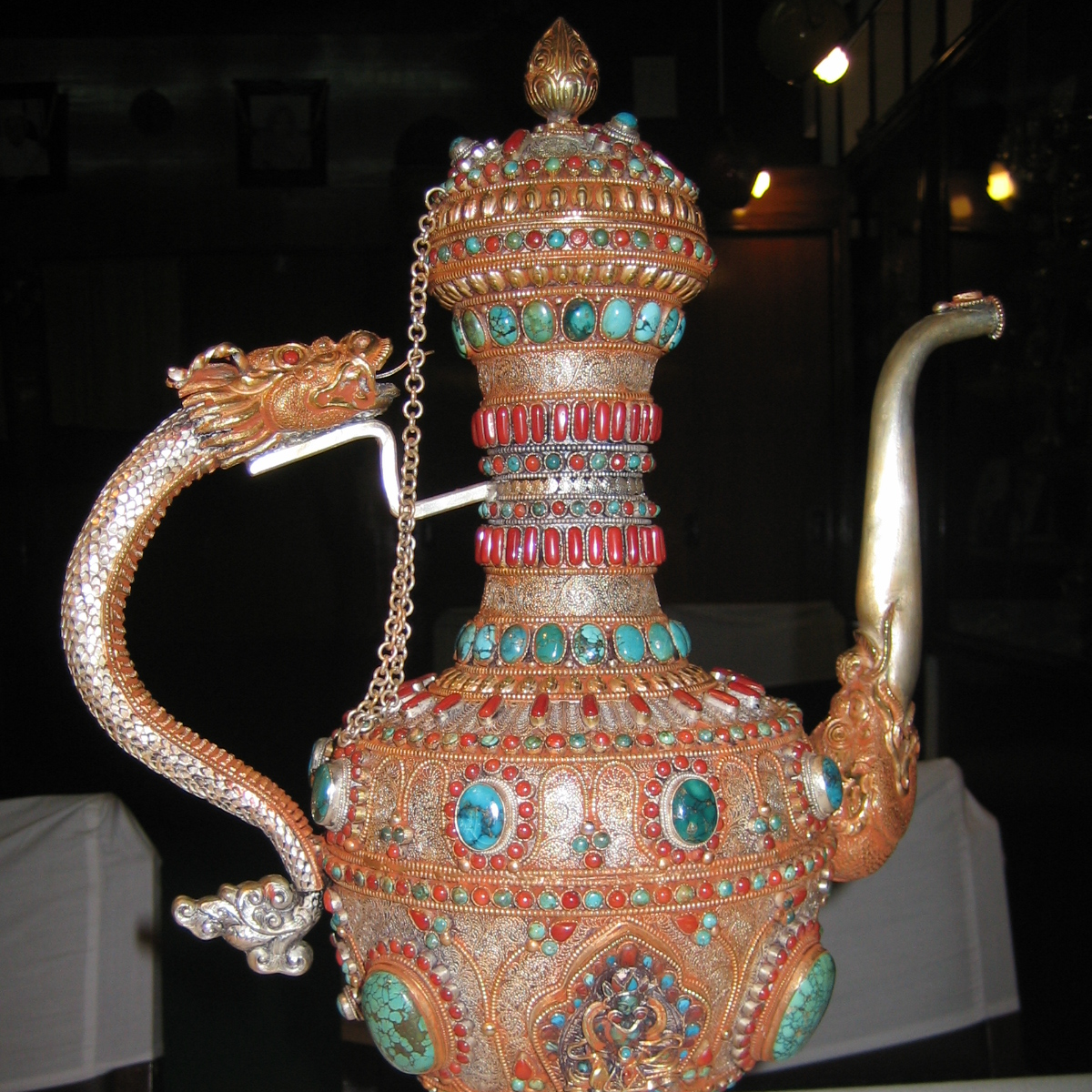 Beautifully carved filigree work teapot. handmade in Nepal with original Turquoise and coral stones . it is one of a kind antique to decorate home and office. collectable item