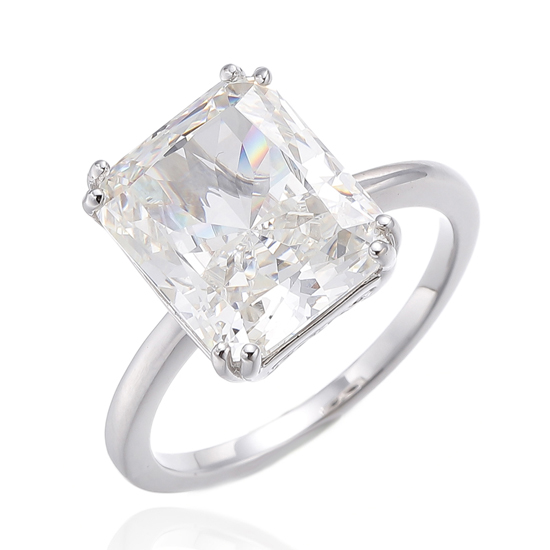 925 Emerald Cut Diamond G Cubic Zircon Rhodium Silver Ring