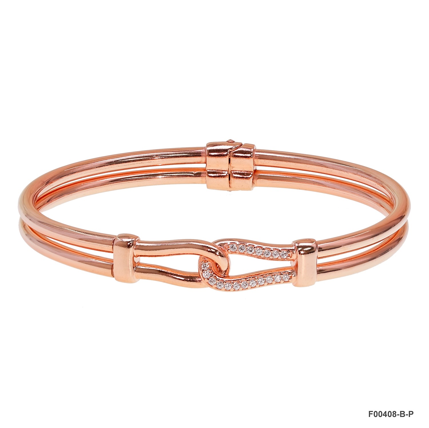 925 Sterling Silver of Double Wire hidden Hinge White CZ Design Bangle from Italian product.