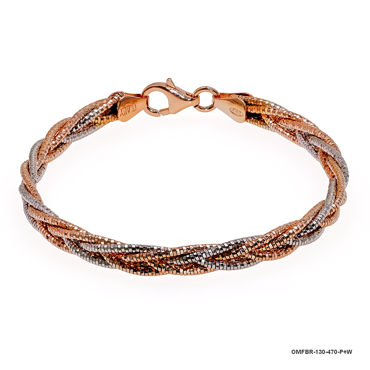 925 Silver bracelet of 5 DC Round Omega Braided Two Color by line Flat bangle ~4.7mm from Italian product